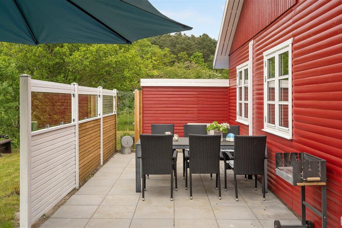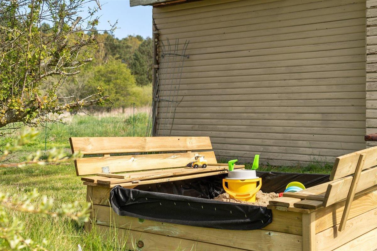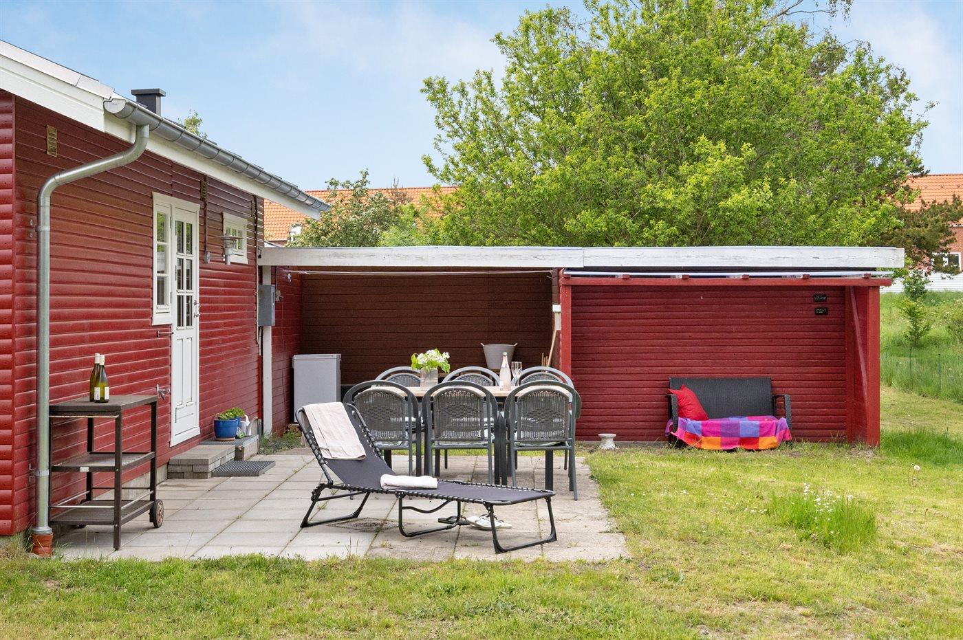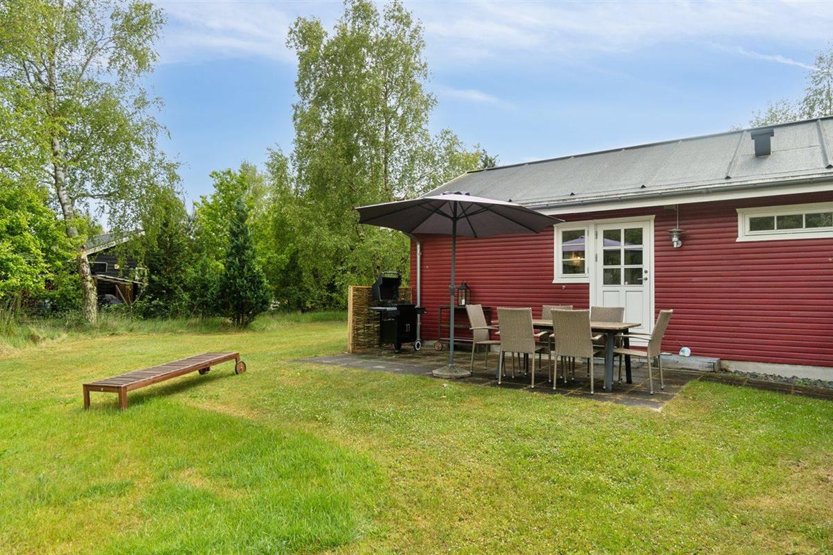 De vakantiewoning is gelegen op een 1200 m² groot natuural grond. Afstand tot de zee 480 m. Afstand tot meer 620 m. Dichtstbijzijnde winkel 1500 m. Er is een golfbaan op een afstand van 2700 m. Bij de vakantiewoning hoort 46 m² terras. Daarnaast is er een overdekt terras. Zandbak. Shelter. Barbecue. Parkeerplaats bij het huis.
