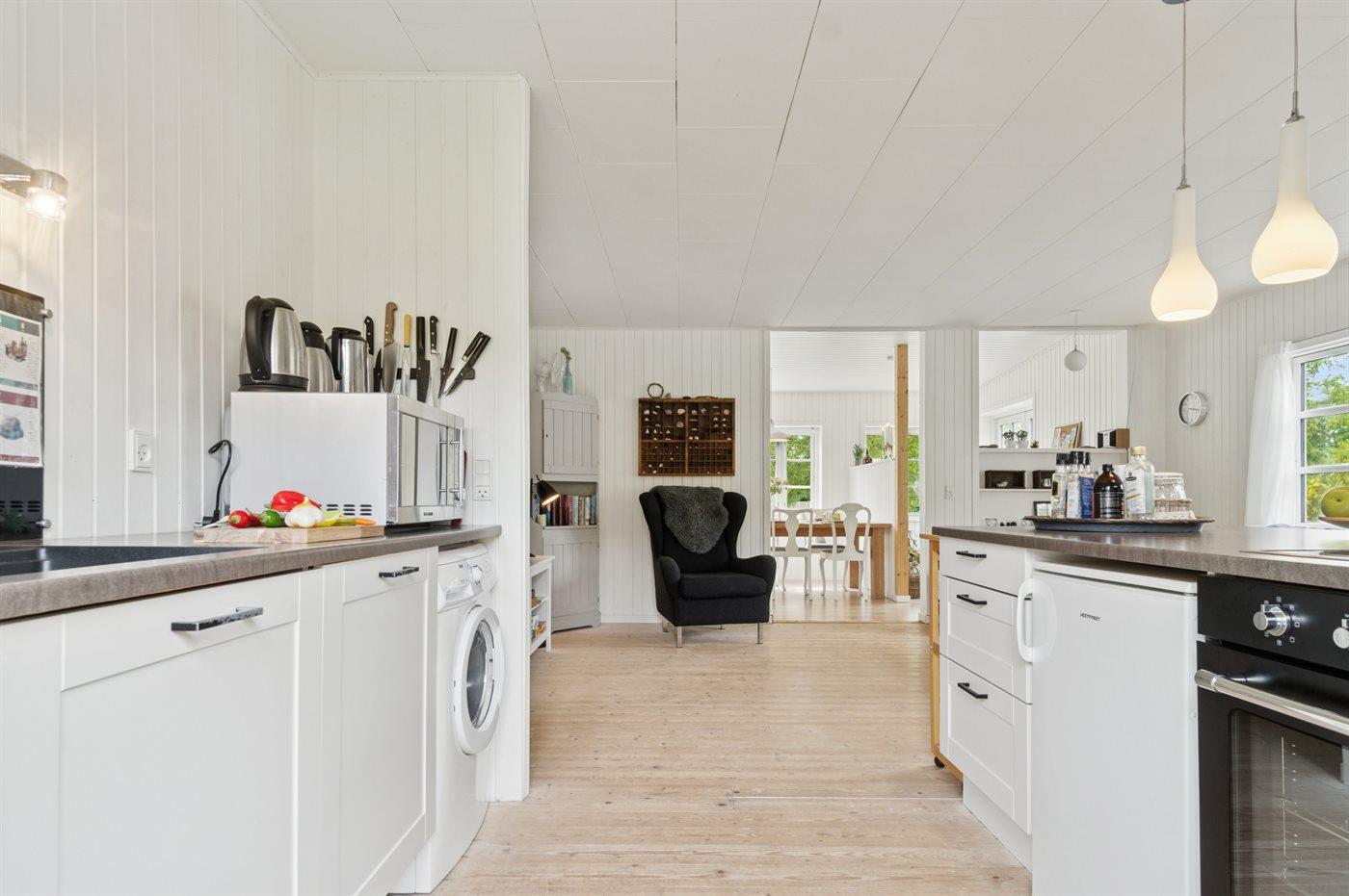 De keuken is uitgerust met koelkast Er zijn 4 keramische kookplaten, heteluchtoven, magnetron en vaatwasser.
