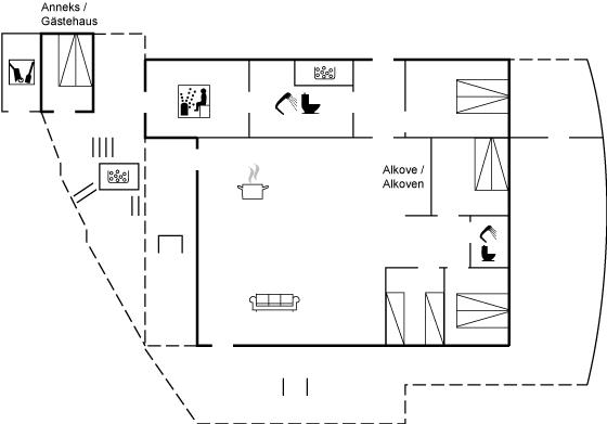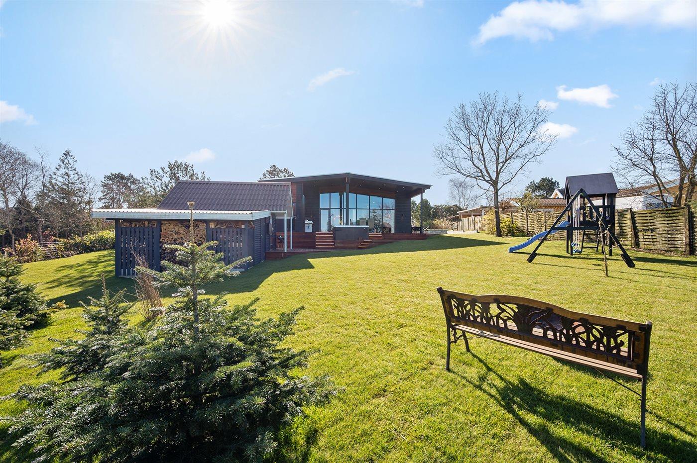 De vakantiewoning is gelegen op een 1420 m² groot aangelegde tuin. De grond is omheind. Afstand tot de zee 250 m. Dichtstbijzijnde winkel 750 m. Bij de vakantiewoning hoort 100 m² terras. Daarnaast is er een 30 m² groot overdekt terras. Gereedschapsruimte. Schommel. Speeltoren. Glijbaan.Vuurplaats. Barbecue. Parkeerplaats bij het huis.