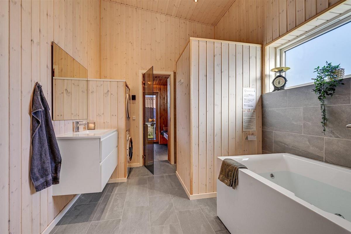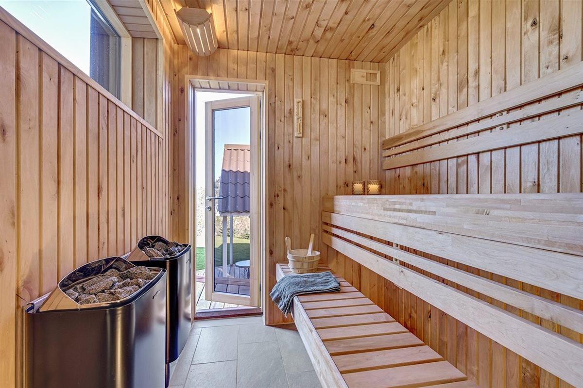 Er is 2 badkamers met douchehok en 2 toiletten. Er is vloerverwarming in 2 van de badkamers.. Badkuip. De sauna biedt de gelegenheid tot ontspanning.