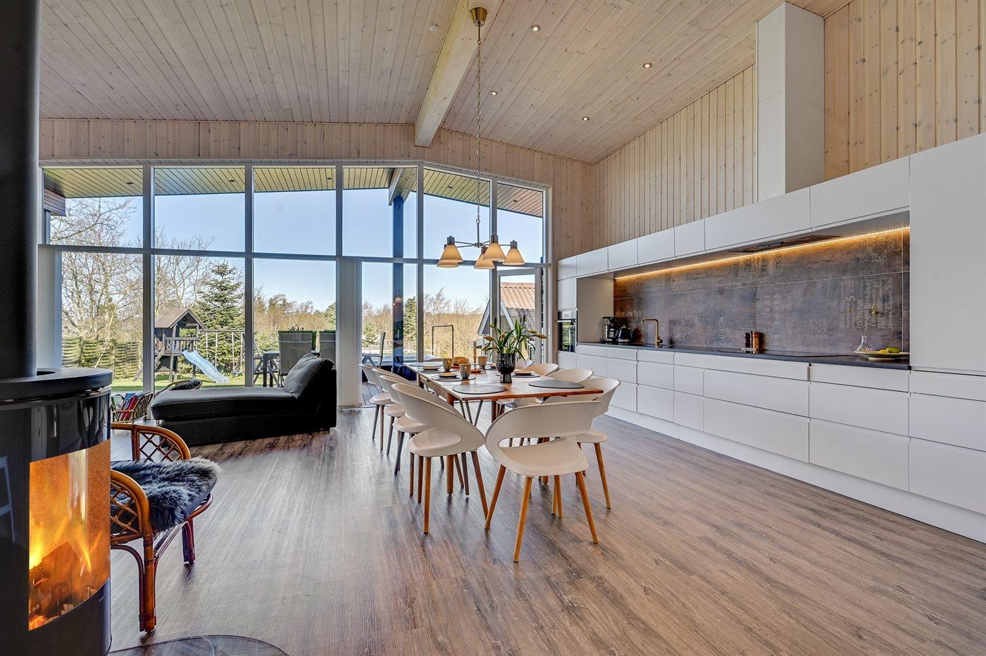 De keuken is uitgerust met koelkast Er is 4 inductiekookplaten, heteluchtoven, magnetron en vaatwasser.