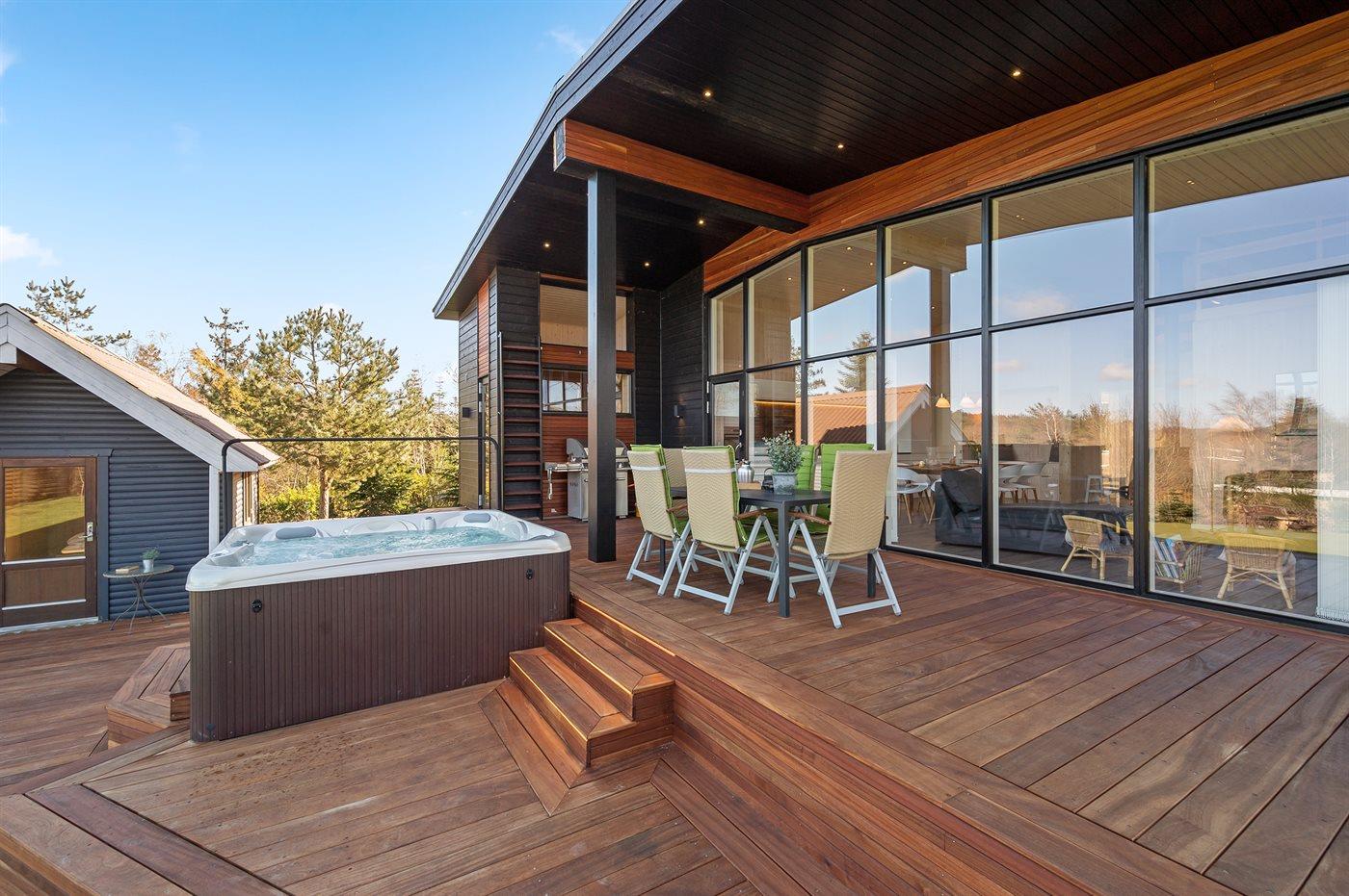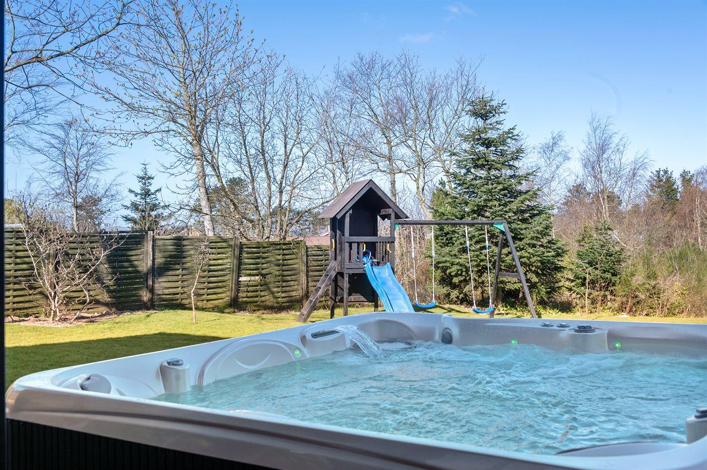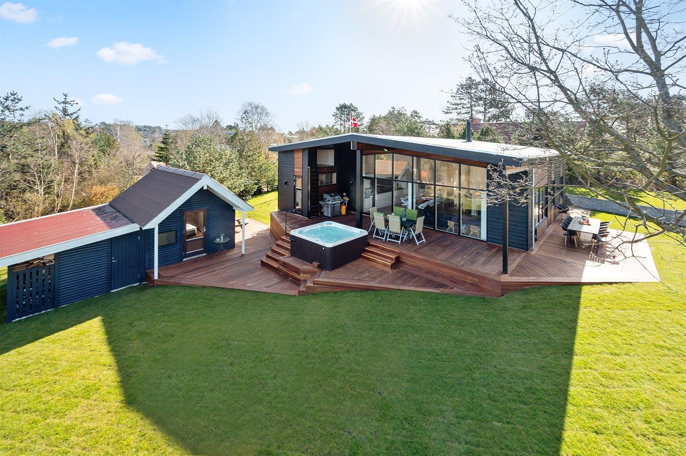 Modern vakantiehuis nabij zee in Ebeltoft met sauna, bubbelbaden en grote tuin, ideaal voor gezinnen.