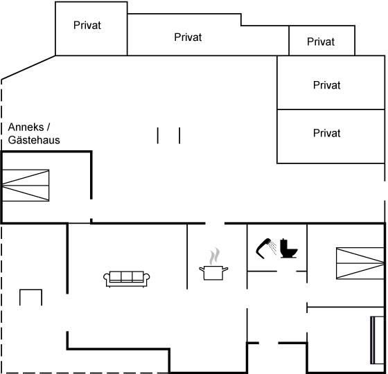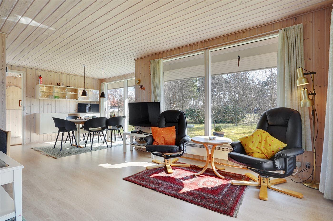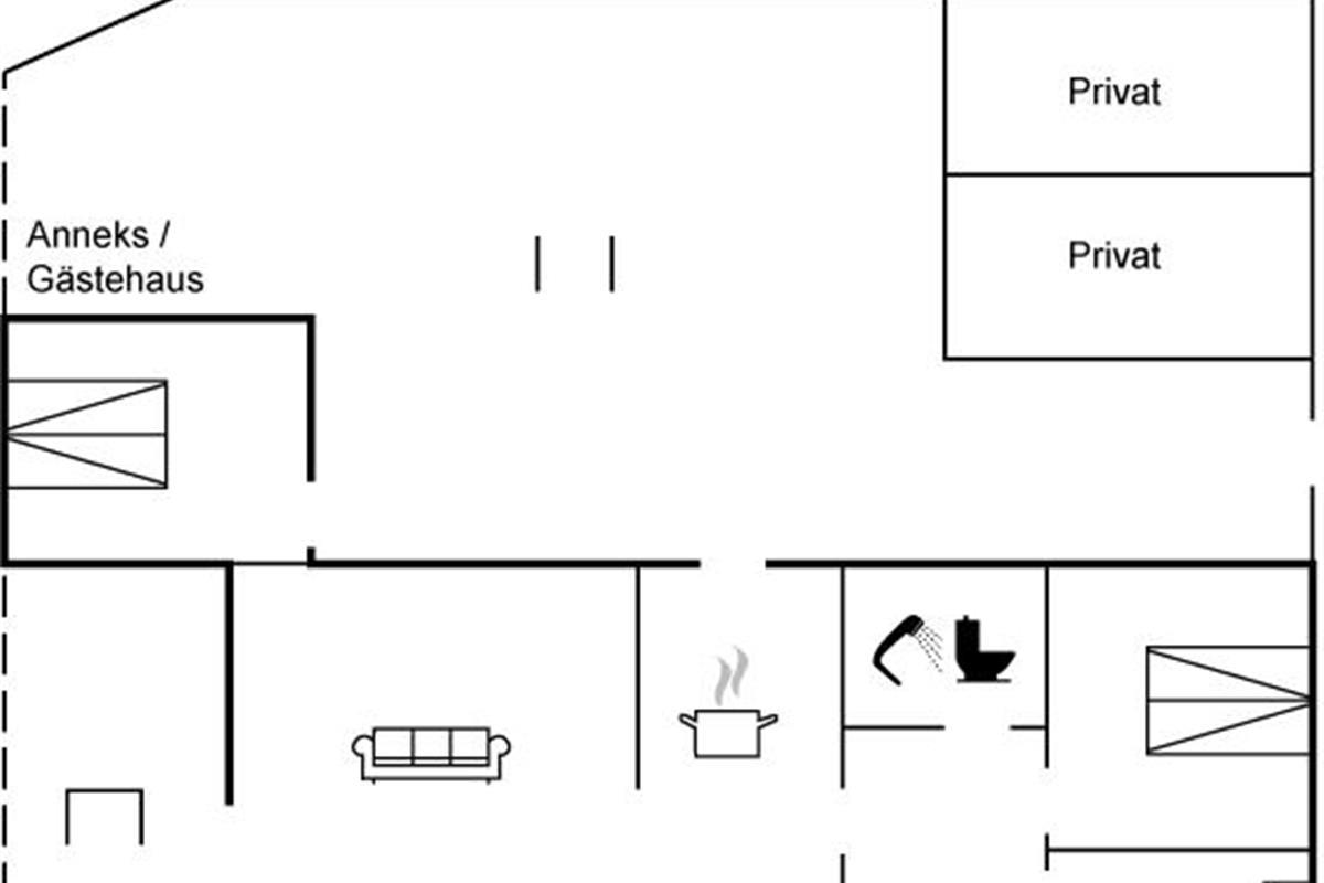 De vakantiewoning is gelegen op een 1216 m² groot aangelegde tuin. Afstand tot de zee 100 m. Dichtstbijzijnde winkel 4000 m. Bij de vakantiewoning hoort terras en overdekt terras. Voetbaldoel. Barbecue. Parkeerplaats bij het huis.