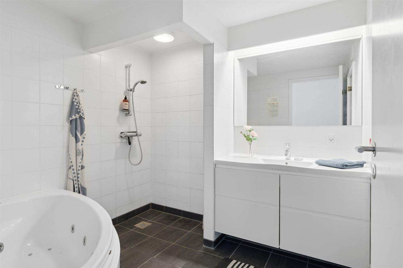 Er is 1 badkamer met douchehok en 1 toilet.. Er is vloerverwarming in 1 badkamer. De sauna biedt de gelegenheid tot ontspanning.