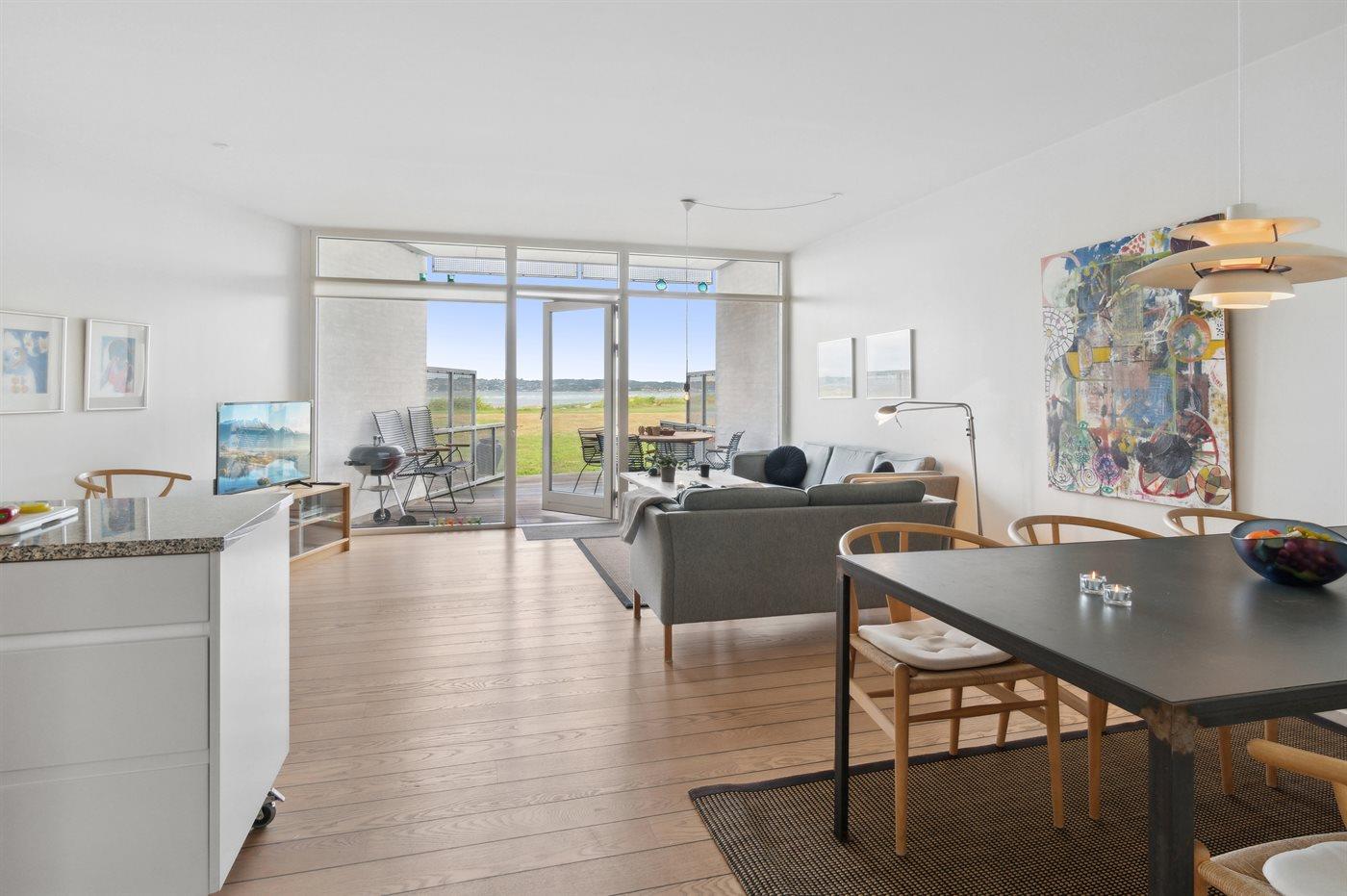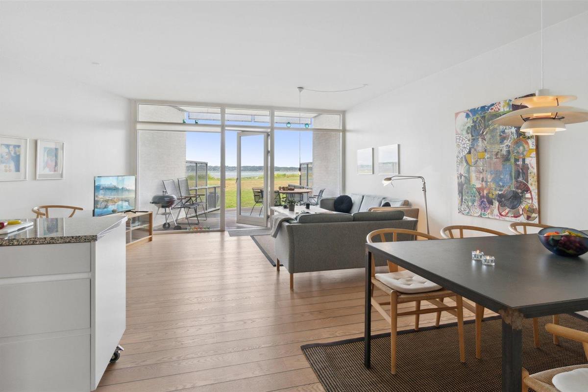 Ruim vakantieappartement in Ebeltoft met sauna, bubbelbad en zeezicht, direct aan het strand gelegen.