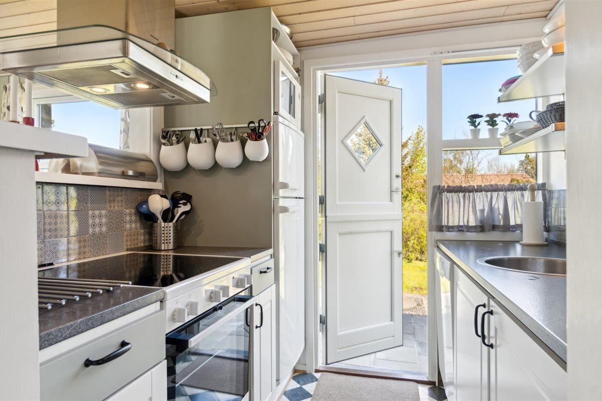 De keuken is uitgerust met koelkast Er zijn 4 keramische kookplaten, heteluchtoven, magnetron en vaatwasser.