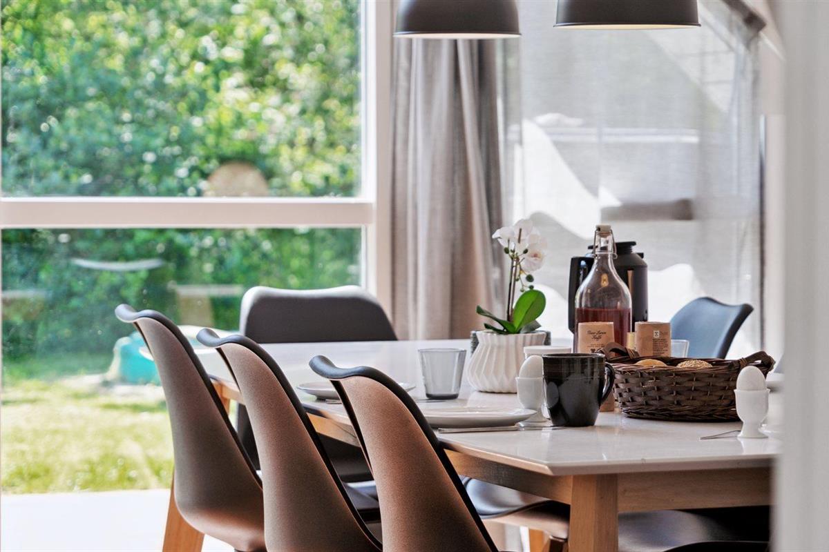 De keuken is uitgerust met koelkast Er zijn 4 keramische kookplaten, heteluchtoven, magnetron en vaatwasser.