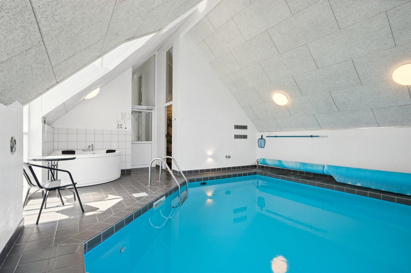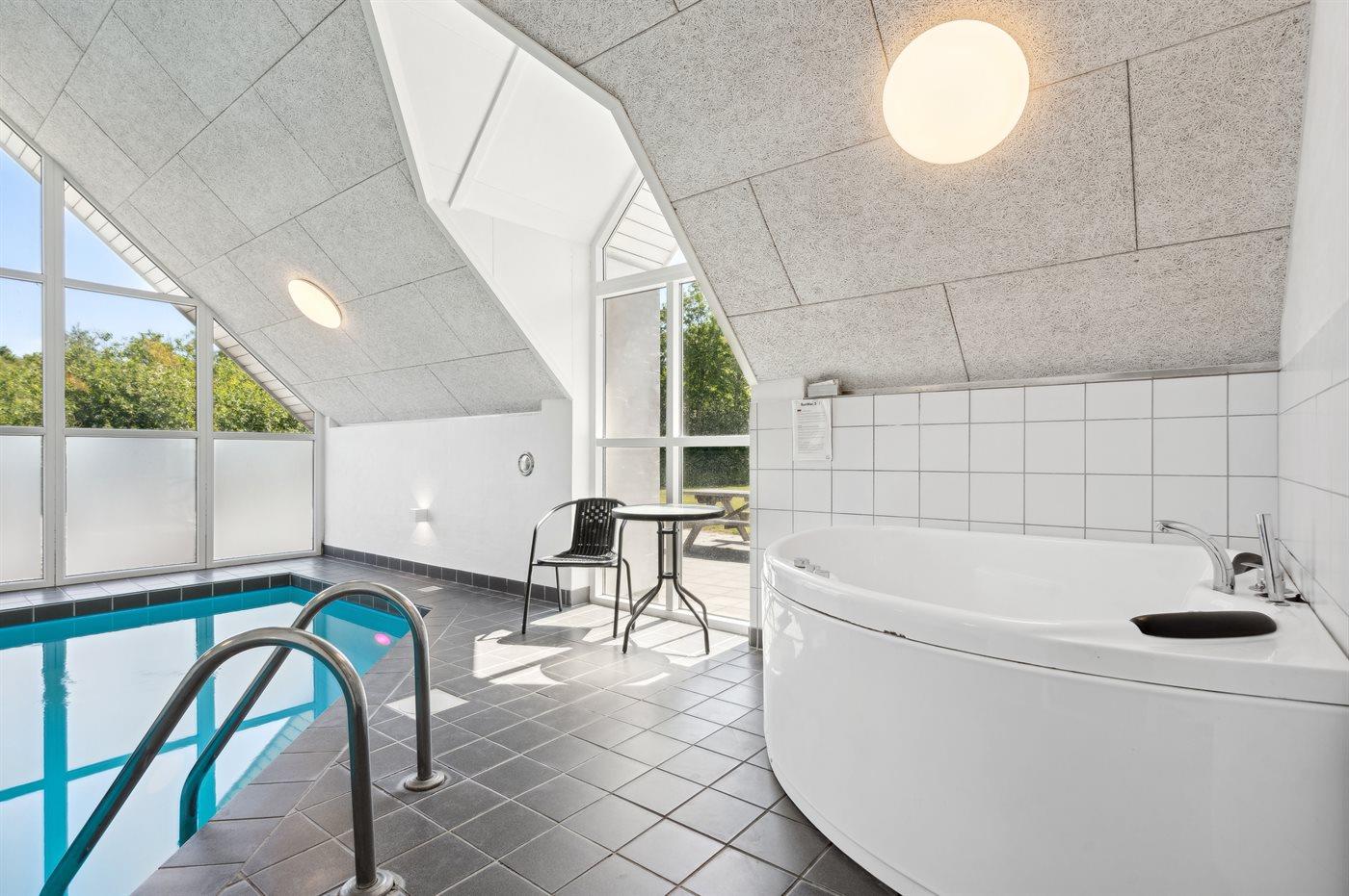 Het binnenzwembad biedt de gelegenheid om heerlijk te spelen en gezellig samen te zijn.Het binnenzwembad heeft een tegenstroominstallatie. Er is vloerverwarming in het zwembadgebied.