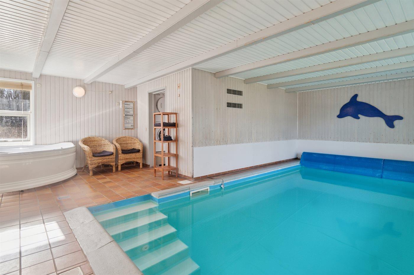 Het binnenzwembad biedt de gelegenheid om heerlijk te spelen en gezellig samen te zijn. Er is vloerverwarming in het zwembadgebied.
