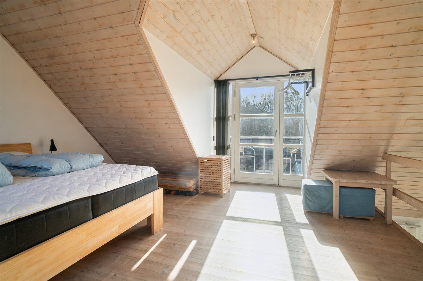 Er zijn in totaal 3 slaapkamers. De slaapplaatsen zijn als volgt verdeeld: 6 slaapplaatsen in tweepersoonsbedden. 2 slaapplaatsen in stapelbed. 2 van deze slaapplaatsen bevinden zich in de open slaapzolder.