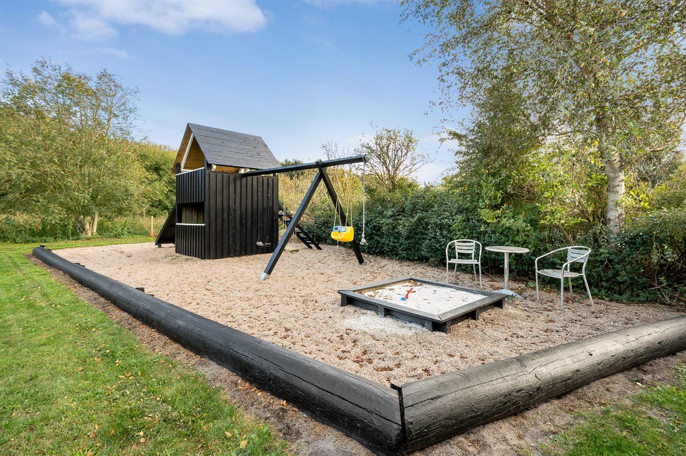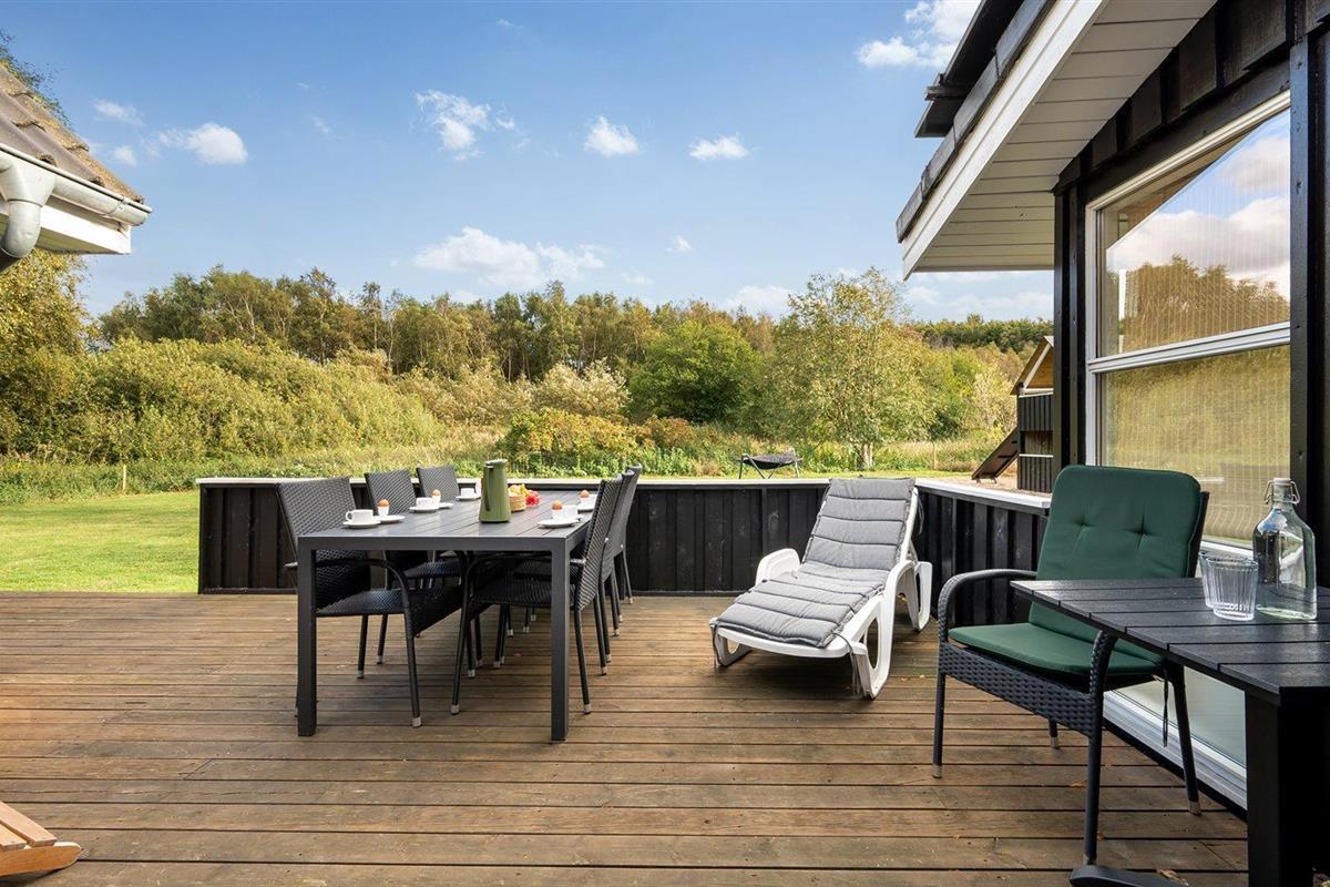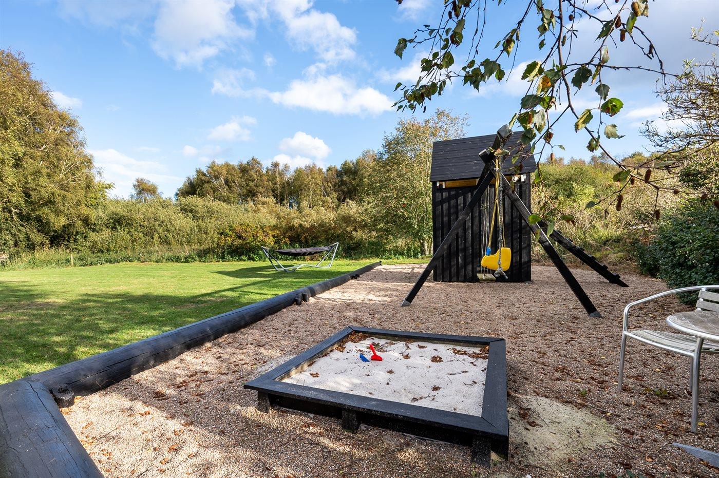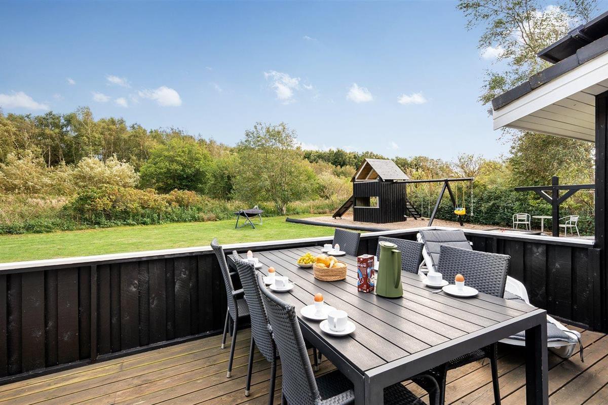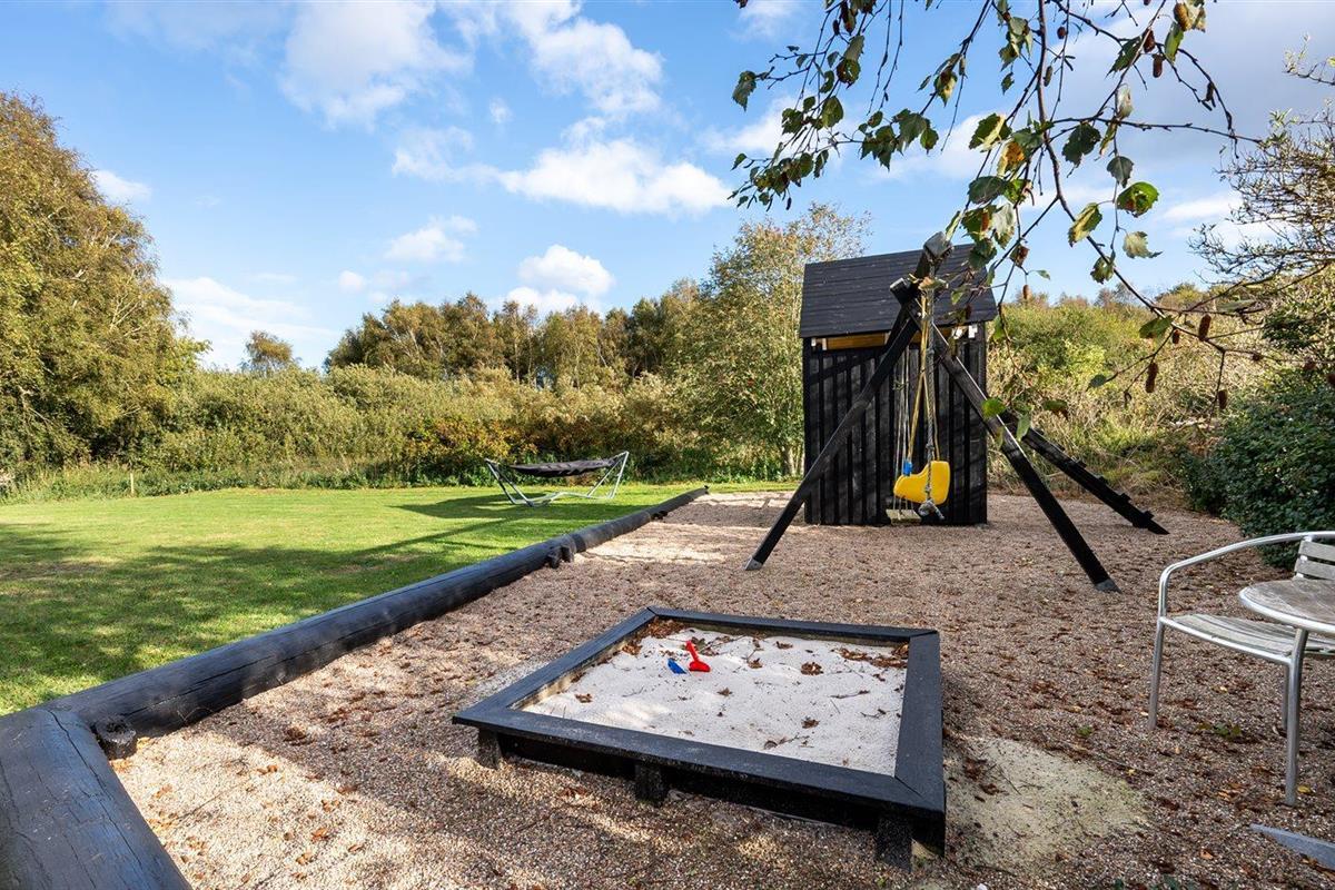 De vakantiewoning is gelegen op een 1456 m² groot aangelegde tuin. Afstand tot de zee 300 m. Dichtstbijzijnde winkel 200 m. Bij de vakantiewoning hoort terras. Schommel. Zandbak. Speeltoren. Barbecue. Carport ter beschikking. Parkeerplaats bij het huis.