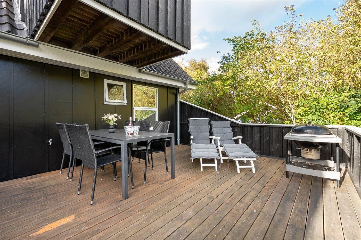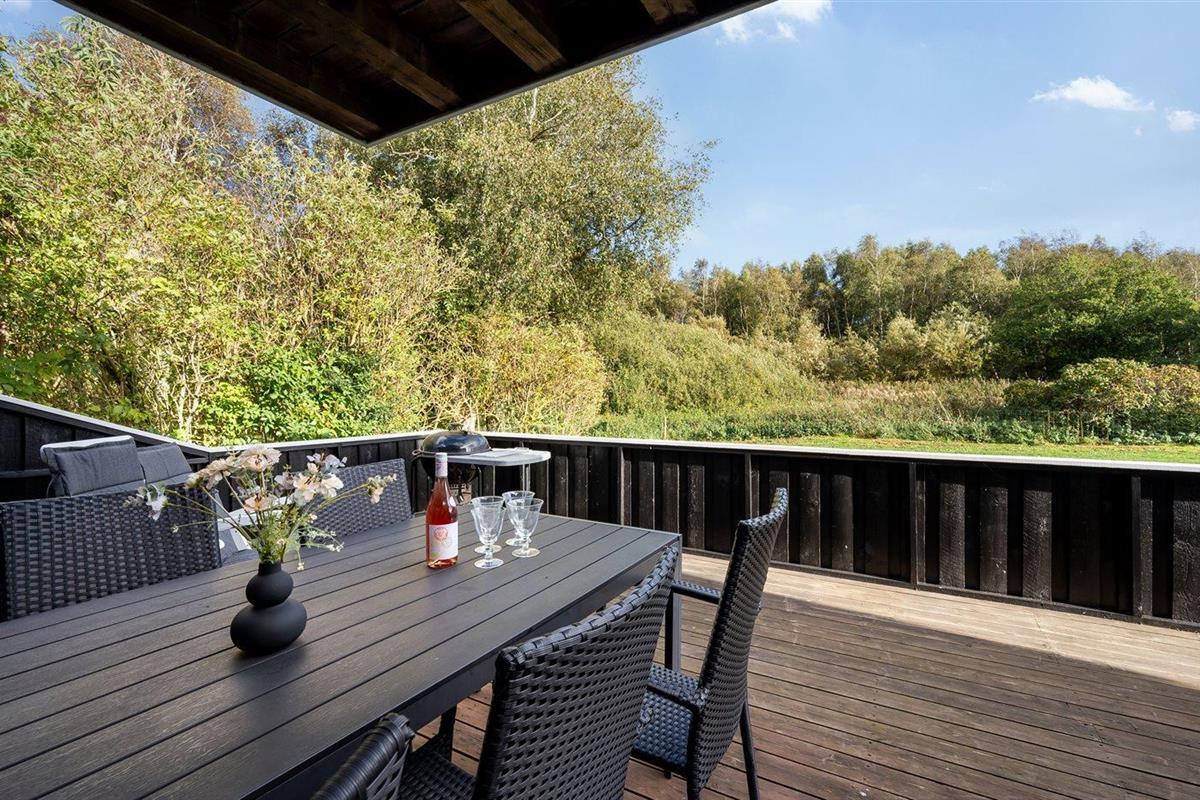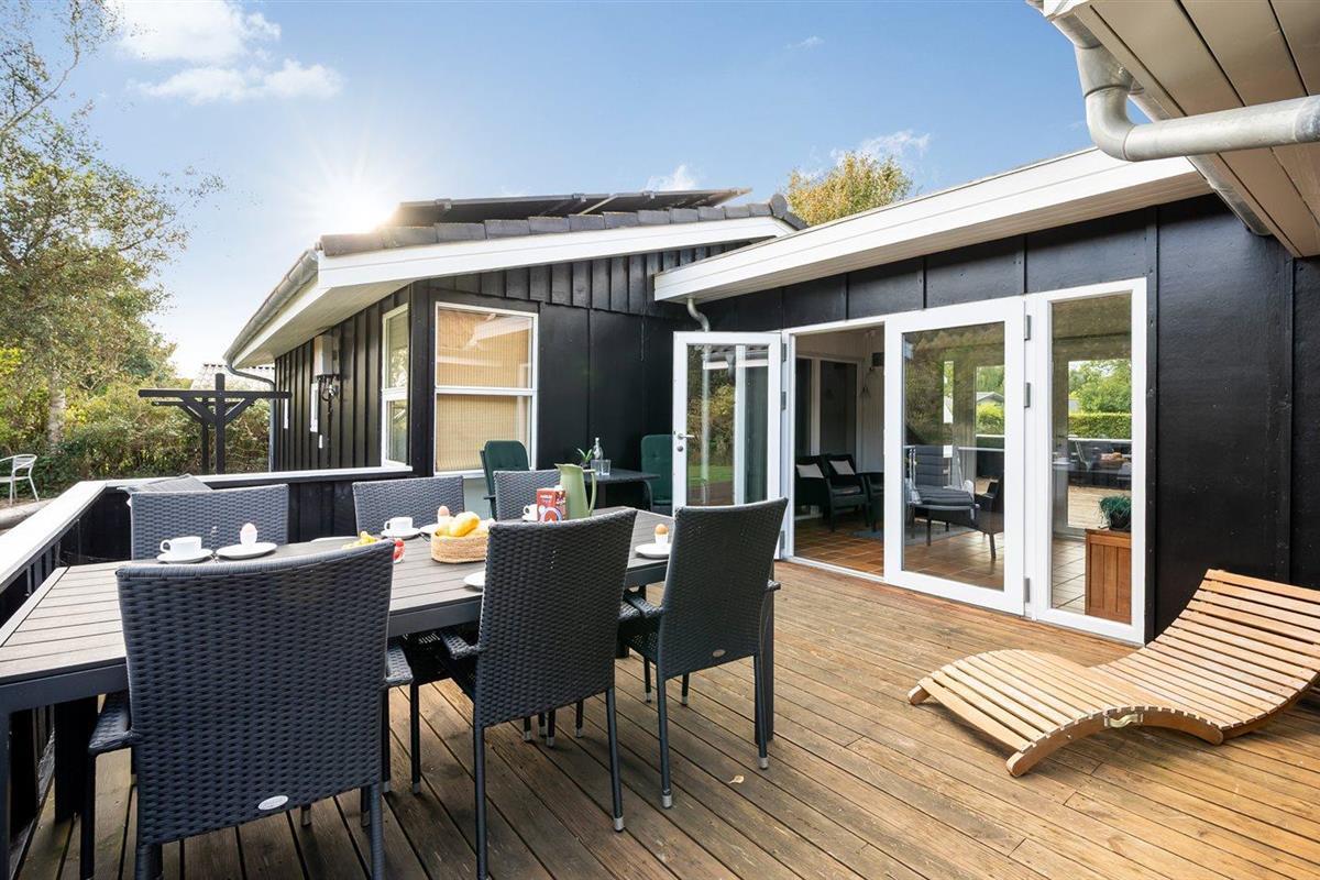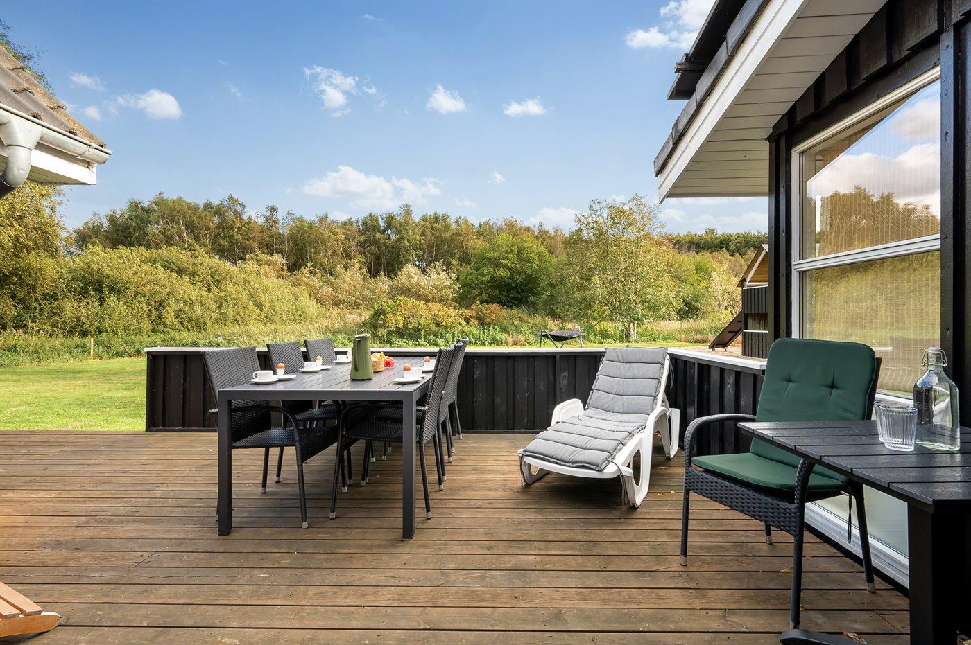 De vakantiewoning is gelegen op een 1456 m² groot aangelegde tuin. Afstand tot de zee 300 m. Dichtstbijzijnde winkel 200 m. Bij de vakantiewoning hoort terras. Schommel. Zandbak. Speeltoren. Barbecue. Carport ter beschikking. Parkeerplaats bij het huis.