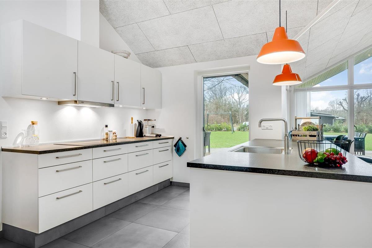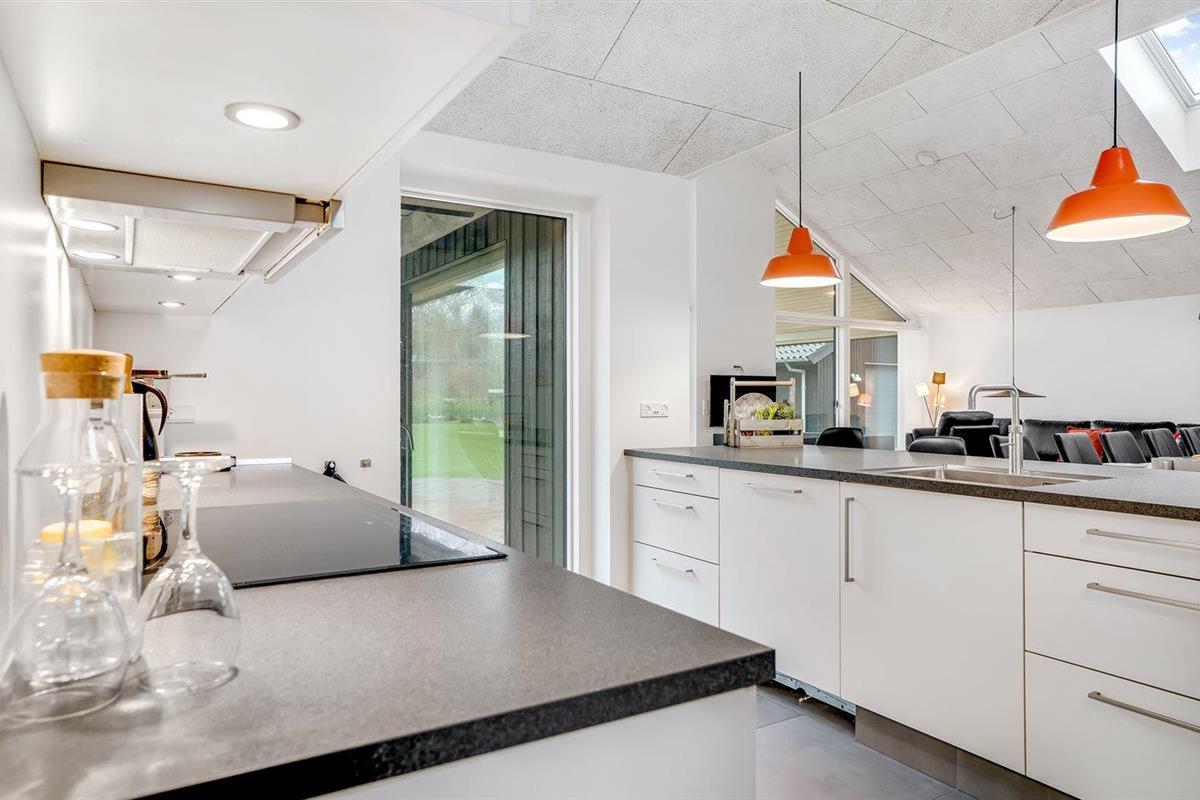 De keuken is uitgerust met koelkast Er is 4 inductiekookplaten, heteluchtoven, magnetron en vaatwasser.