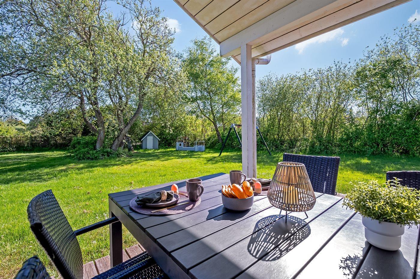 De vakantiewoning is gelegen op een 1200 m² groot aangelegde tuin. Afstand tot de zee 300 m. Dichtstbijzijnde winkel 1000 m. Bij de vakantiewoning hoort terras. Daarnaast is er een overdekt terras. Schommel. Zandbak. Speelhuisje. Voetbaldoel. Afstand tot speelplaats 1000 m. Barbecue. Carport ter beschikking. Parkeerplaats bij het huis.
