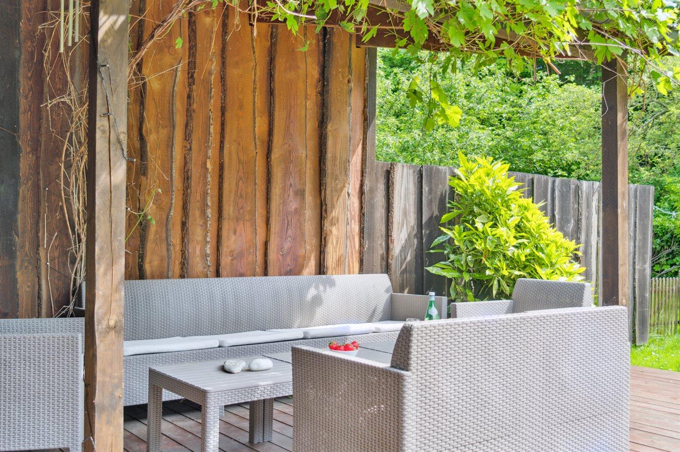 De vakantiewoning is gelegen op een 800 m² groot natuural grond. De grond is omheind. Afstand tot de zee 350 m. Er is een zwemsteiger in de buurt. Dichtstbijzijnde winkel 800 m. Daarnaast is er een overdekt terras. Barbecue. Parkeerplaats bij het huis.