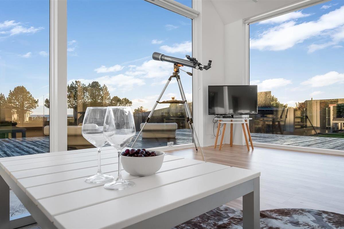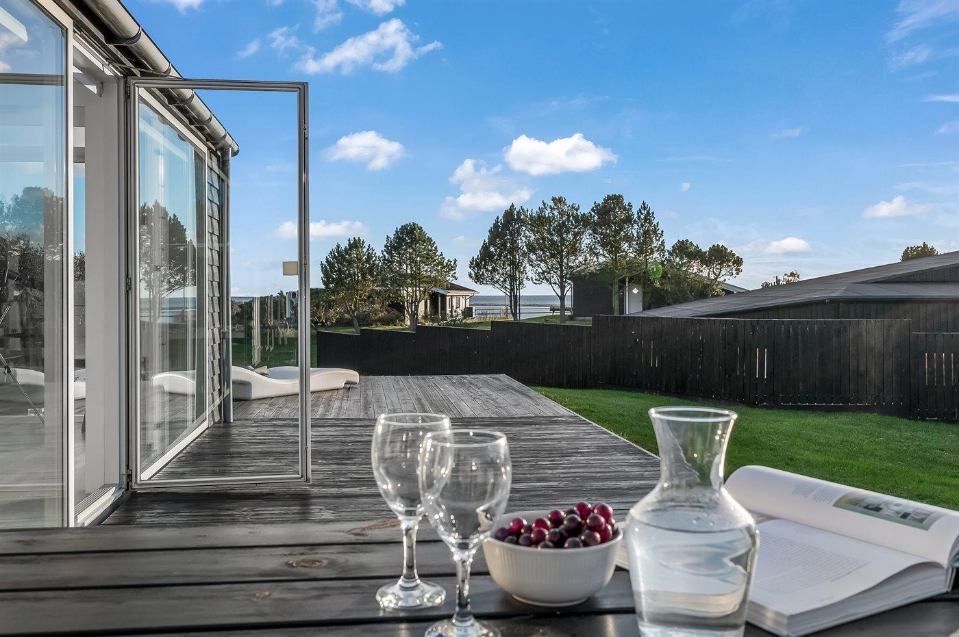 Modern vakantiehuis in Ebeltoft met zeezicht, bubbelbad en energiezuinige warmtepomp.