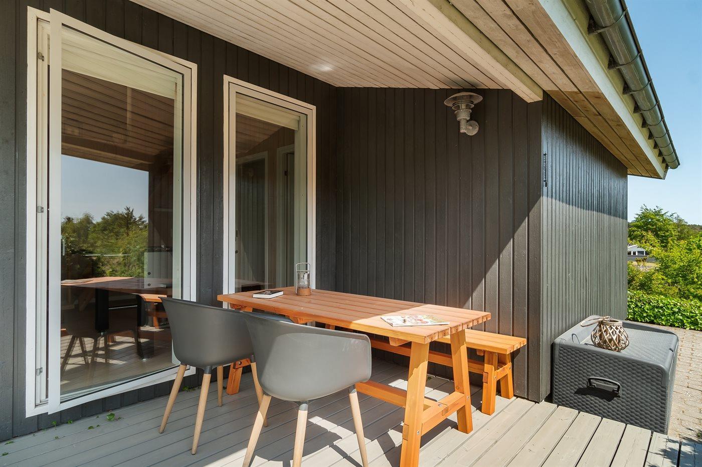 De vakantiewoning is gelegen op een 1225 m² groot natuural grond. Afstand tot de zee 300 m. Dichtstbijzijnde winkel 2000 m. Bij de vakantiewoning hoort 50 m² terras. Daarnaast is er een overdekt terras. Schommel. Glijbaan. Er is een Weber kogelbarbecue beschikbaar. Parkeerplaats bij het huis.