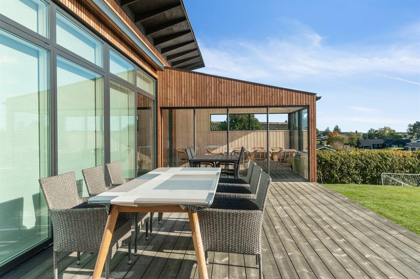Modern vakantiehuis in Ebeltoft met zeezicht, grote tuin en luxe voorzieningen voor een comfortabel verblijf.