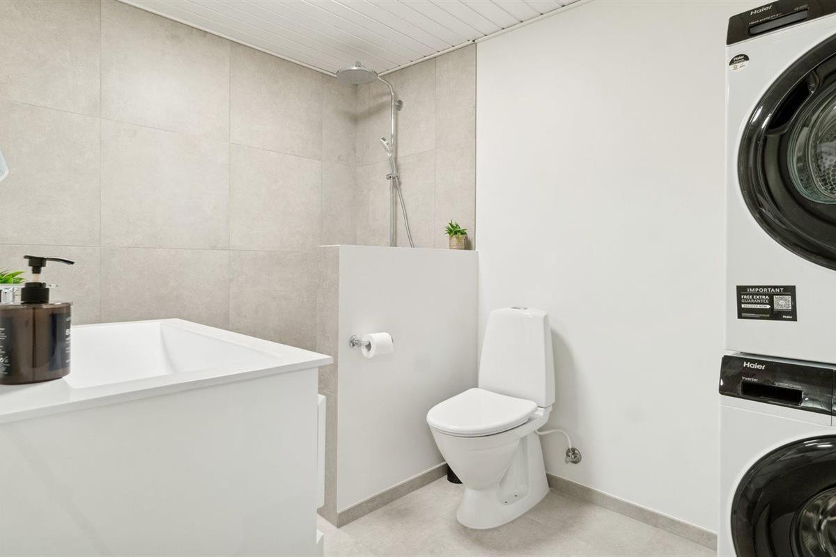 Er is 2 badkamers met douchehok en 2 toiletten. Er is vloerverwarming in 2 van de badkamers. De sauna biedt de gelegenheid tot ontspanning.
