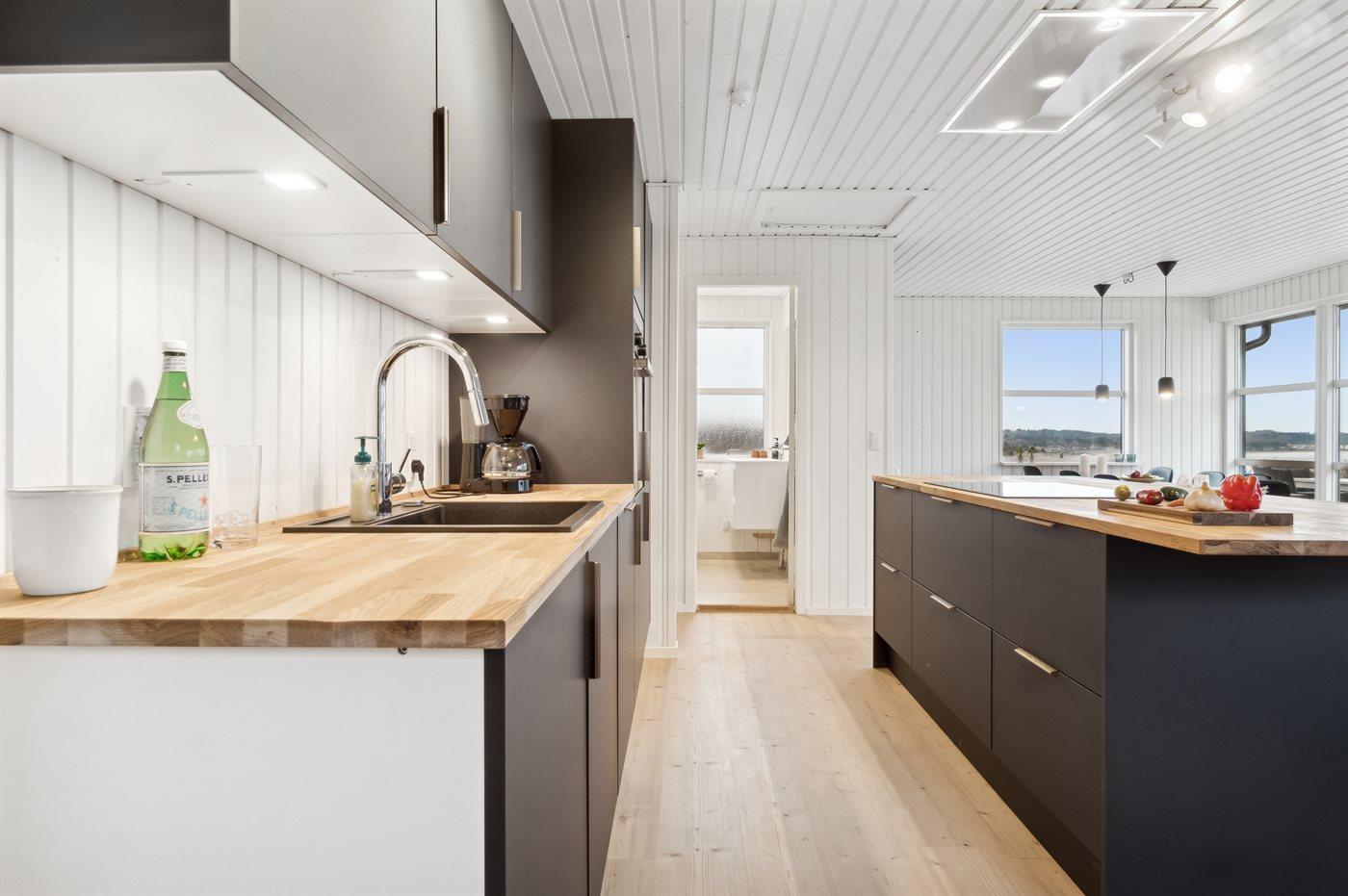 De keuken is uitgerust met koelkast Er is 4 inductiekookplaten, heteluchtoven, magnetron en vaatwasser.