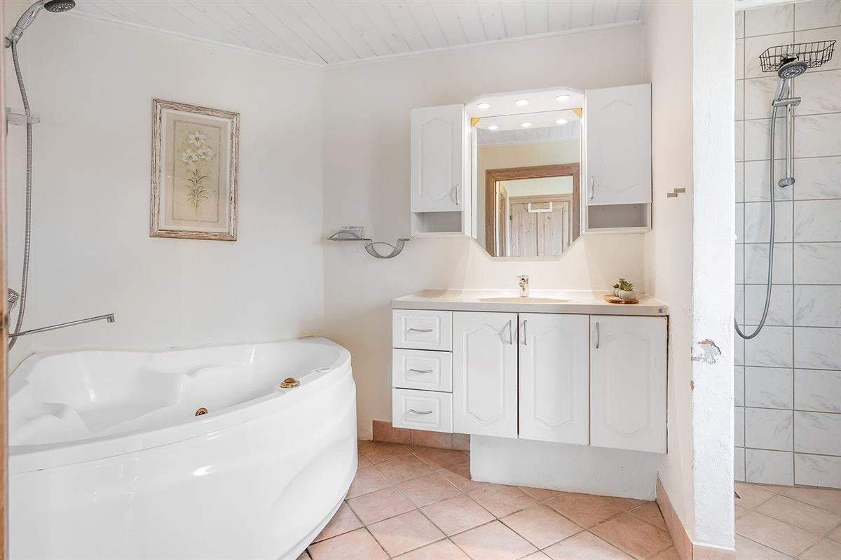 Er is 3 badkamers met douchehok en 3 toiletten. Er is vloerverwarming in 2 van de badkamers.
