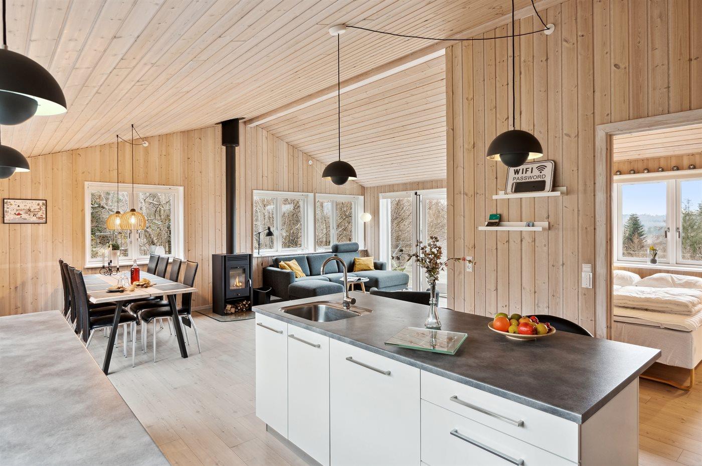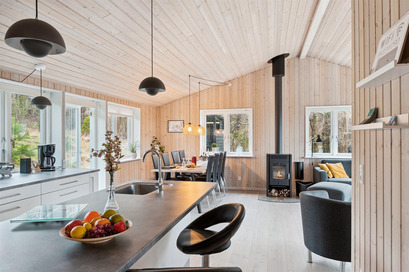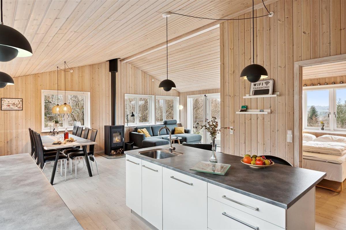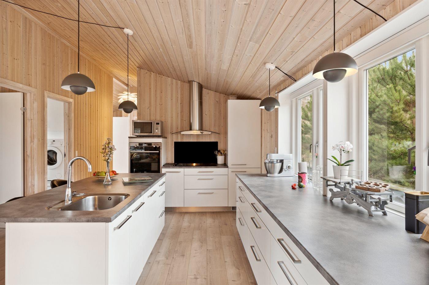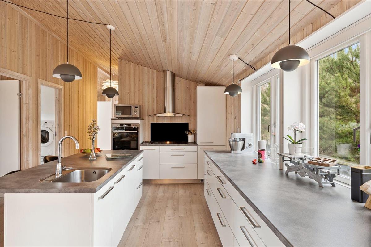 De keuken is uitgerust met koelkast Er is 4 inductiekookplaten, mini-oven, heteluchtoven, magnetron en vaatwasser. Vloerverwarming in de keuken.
