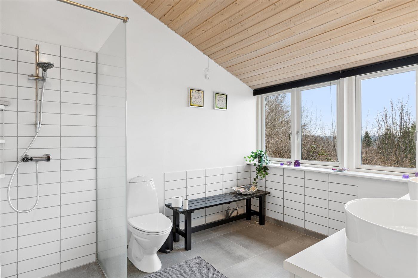 Er is 2 badkamers met douchehok en 2 toiletten. Er is vloerverwarming in 2 van de badkamers.