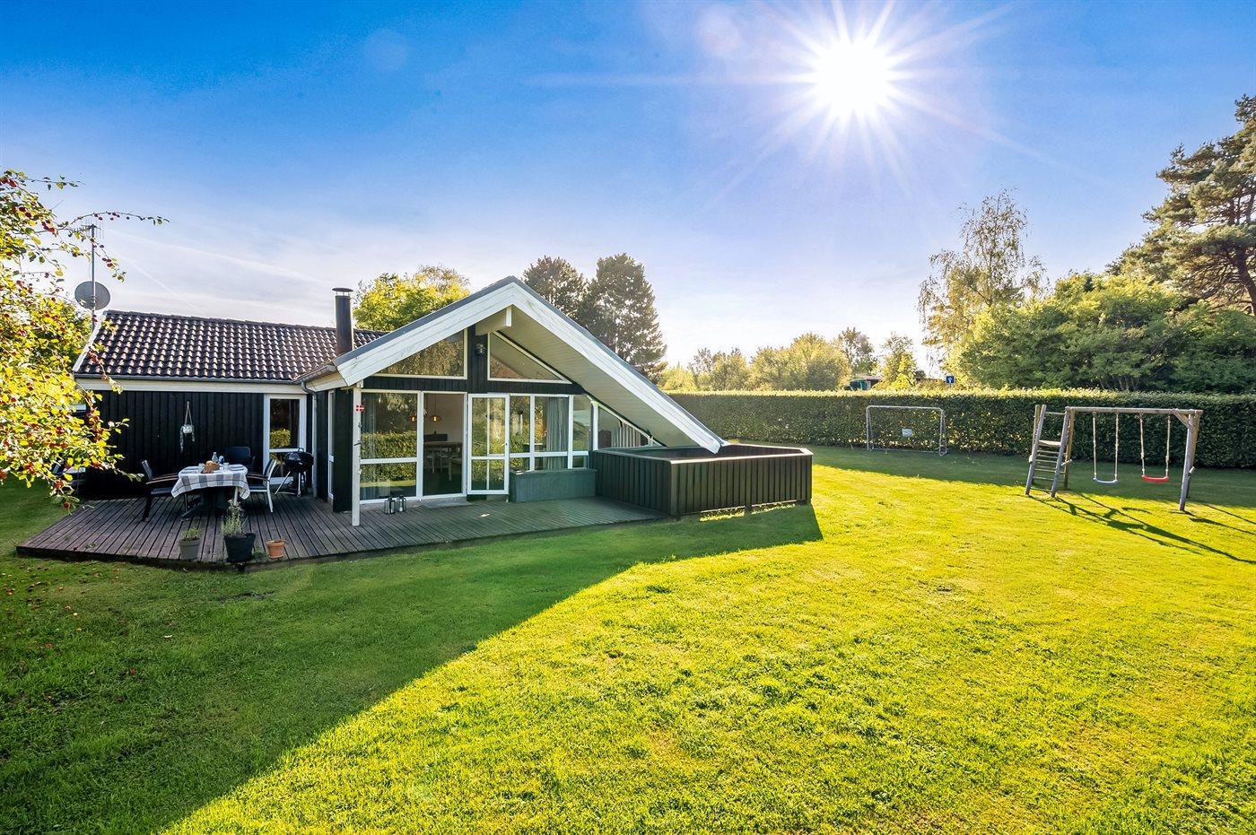 De vakantiewoning is gelegen op een 1200 m² groot natuural grond. Afstand tot de zee 600 m. Dichtstbijzijnde winkel 900 m. Bij de vakantiewoning hoort 40 m² terras. Waarvan in totaal 30 m² beschut terras. Gereedschapsruimte. Schommel. Zandbak. Parkeerplaats bij het huis.
