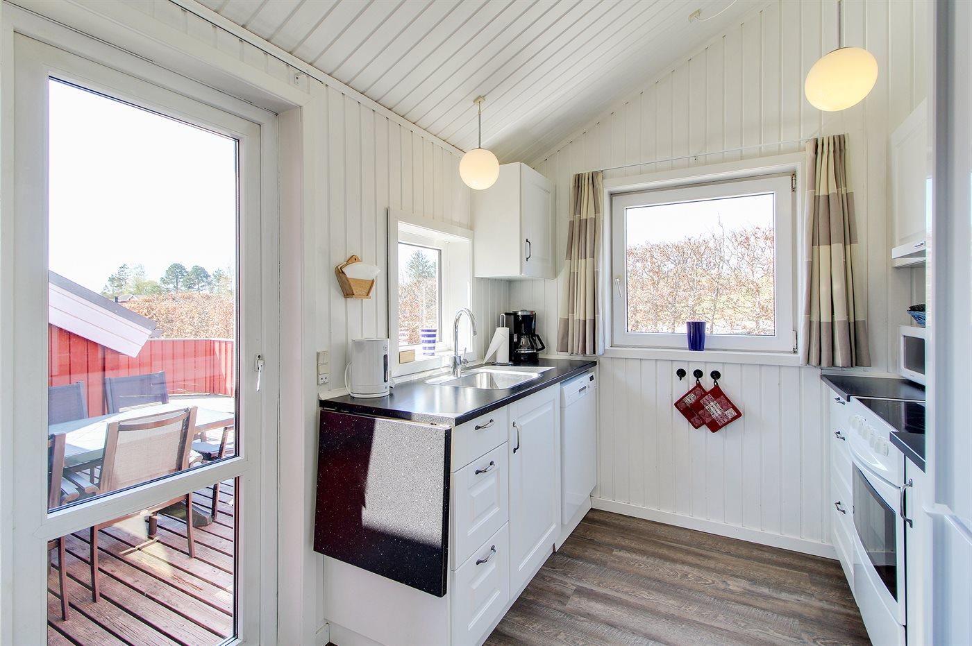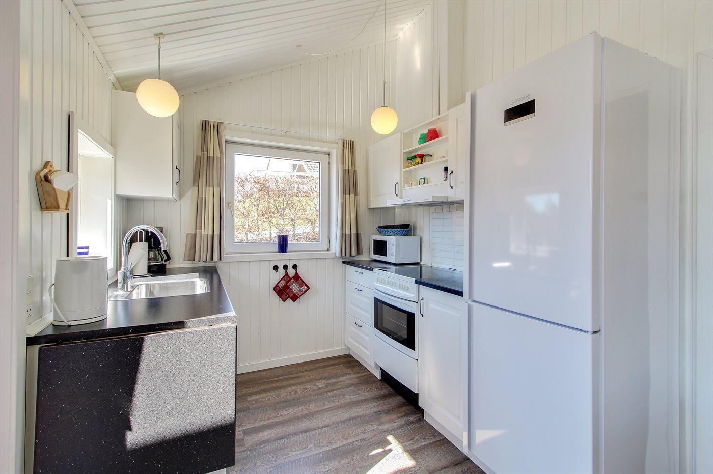 De keuken is uitgerust met koelkast Er zijn 4 keramische kookplaten, bakoven, magnetron en vaatwasser.