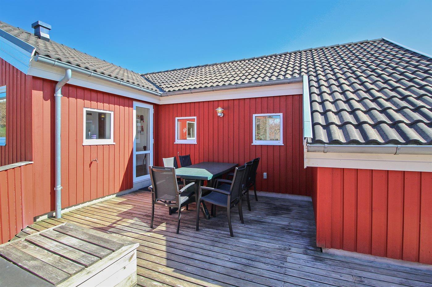 De vakantiewoning is gelegen op een 1900 m² groot natuural grond. Afstand tot de zee 800 m. Dichtstbijzijnde winkel 900 m. Daarnaast is er een 10 m² groot overdekt terras. Waarvan in totaal 30 m² beschut terras. Gereedschapsruimte. Schommel. Zandbak. Parkeerplaats bij het huis.