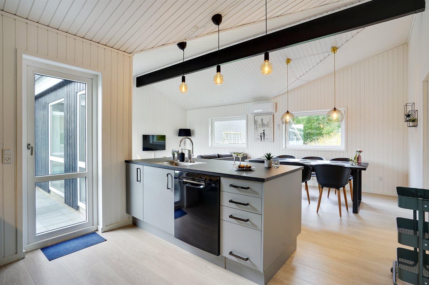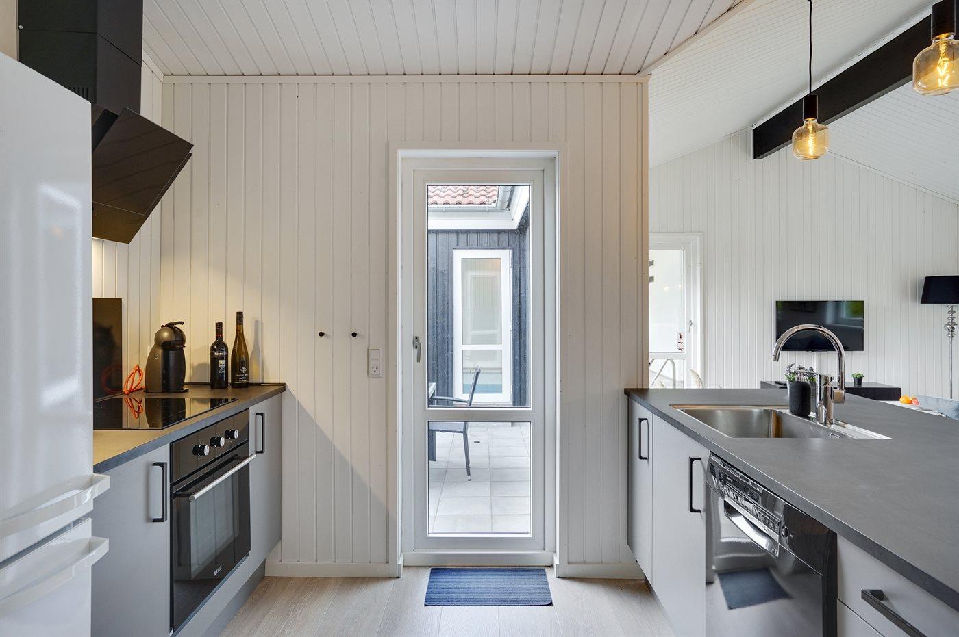De keuken is uitgerust met koelkast Er zijn 4 keramische kookplaten, heteluchtoven en vaatwasser.
