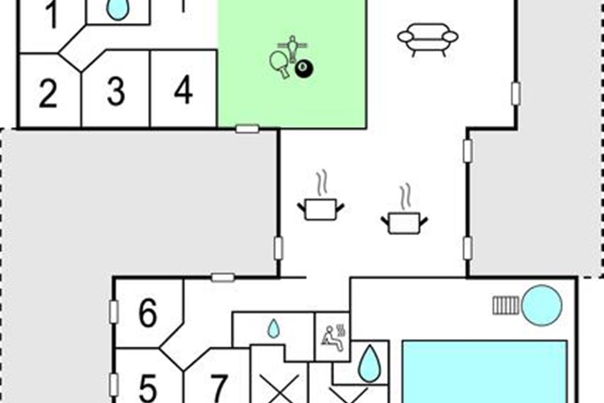 Met een loopafstand naar Ebeltoft, een aangenaam korte rijafstand naar het strand en de plaatsing op een groot en rustig natuurperceel is de ligging van het huis top. Het bevat ook alles wat bijdraagt aan een super goede vakantie. Iedereen heeft hier in het huis de ruimte en kan actief zijn in het zwembad, de grote whirlpool en ook in de sauna. U vindt er ook paltz en rust om op vakantie te lezen. In de mooi ingerichte woonkamer kunt u genieten van muziek en films. U woont hier in het centrum van vele bezienswaardigheden: Glaskunst van wereldklasse, het fregat Jylland, geplaveide straten, kleine winkels, cafés en gastronomische restaurants. In alle richtingen strekt het Nationaal Park Mols Bjerge zich uit tot een uitgestrekt natuurgebied.