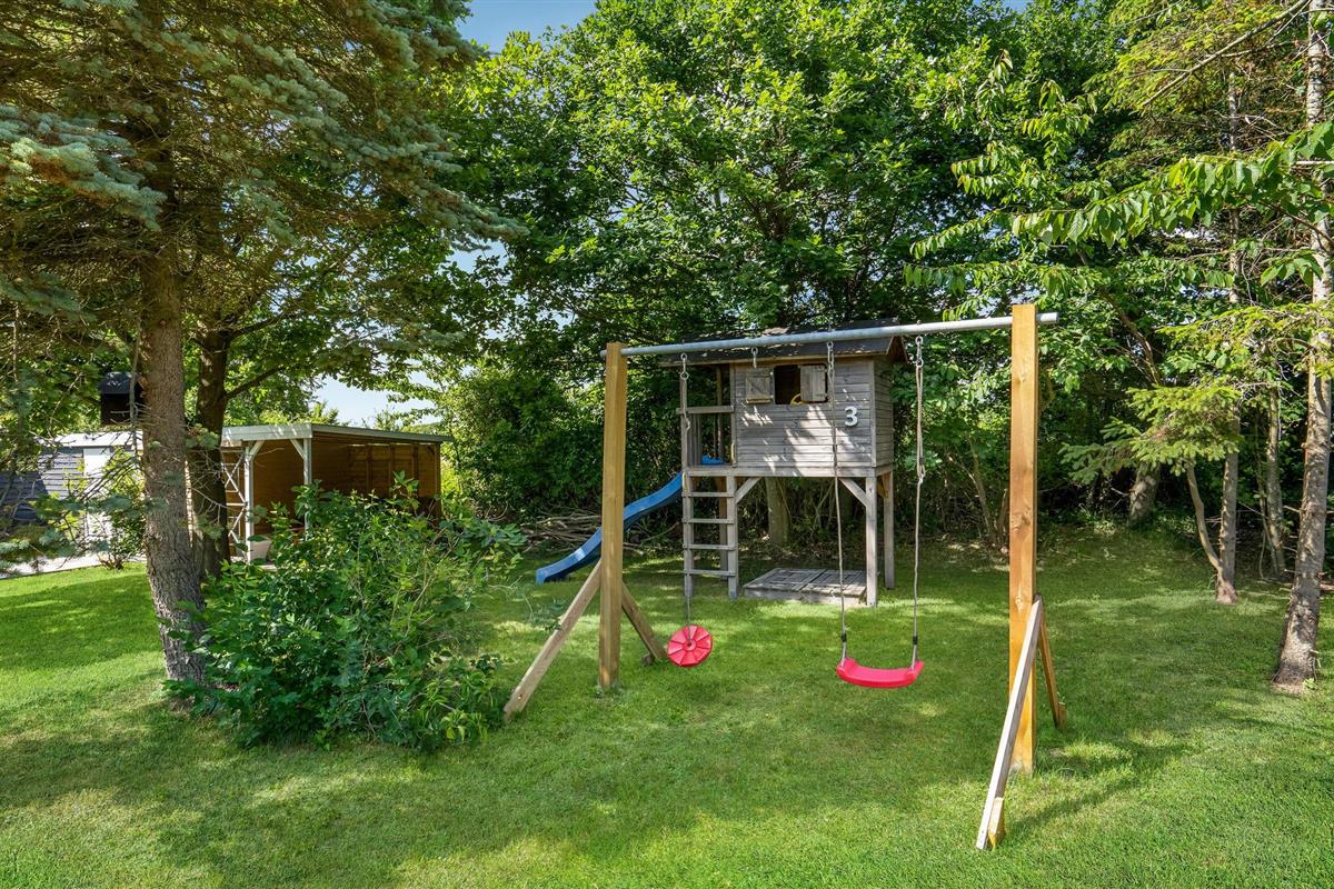 Ga naar het terras om in alle rust te genieten van de versgebakken cake, met uitzicht op de groene boomtoppen, uitgestrekte velden en de zee. Daarna kunnen de kinderen rondrennen in de tuin, zich uitleven op de speeltoren en de hemel aanraken op de schommels.