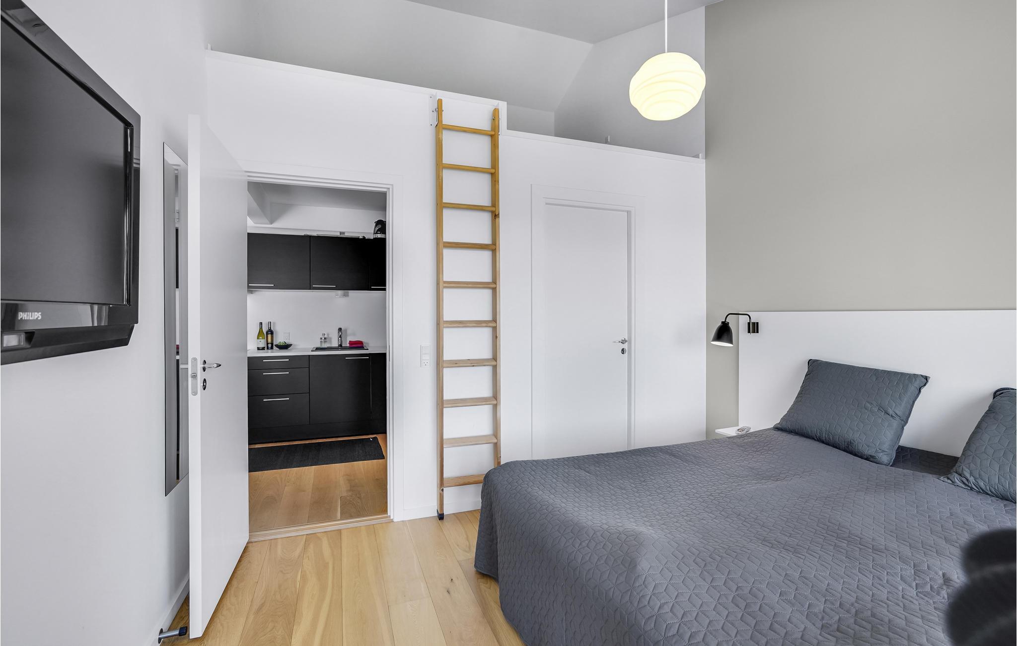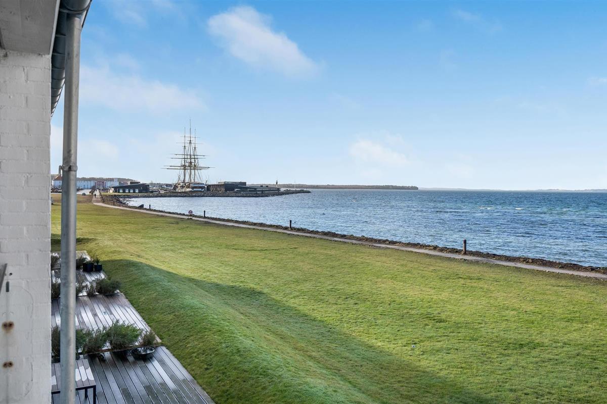 Geniet van een prachtig appartement aan het water met uitzicht op fregat Jylland in Ebeltoft.