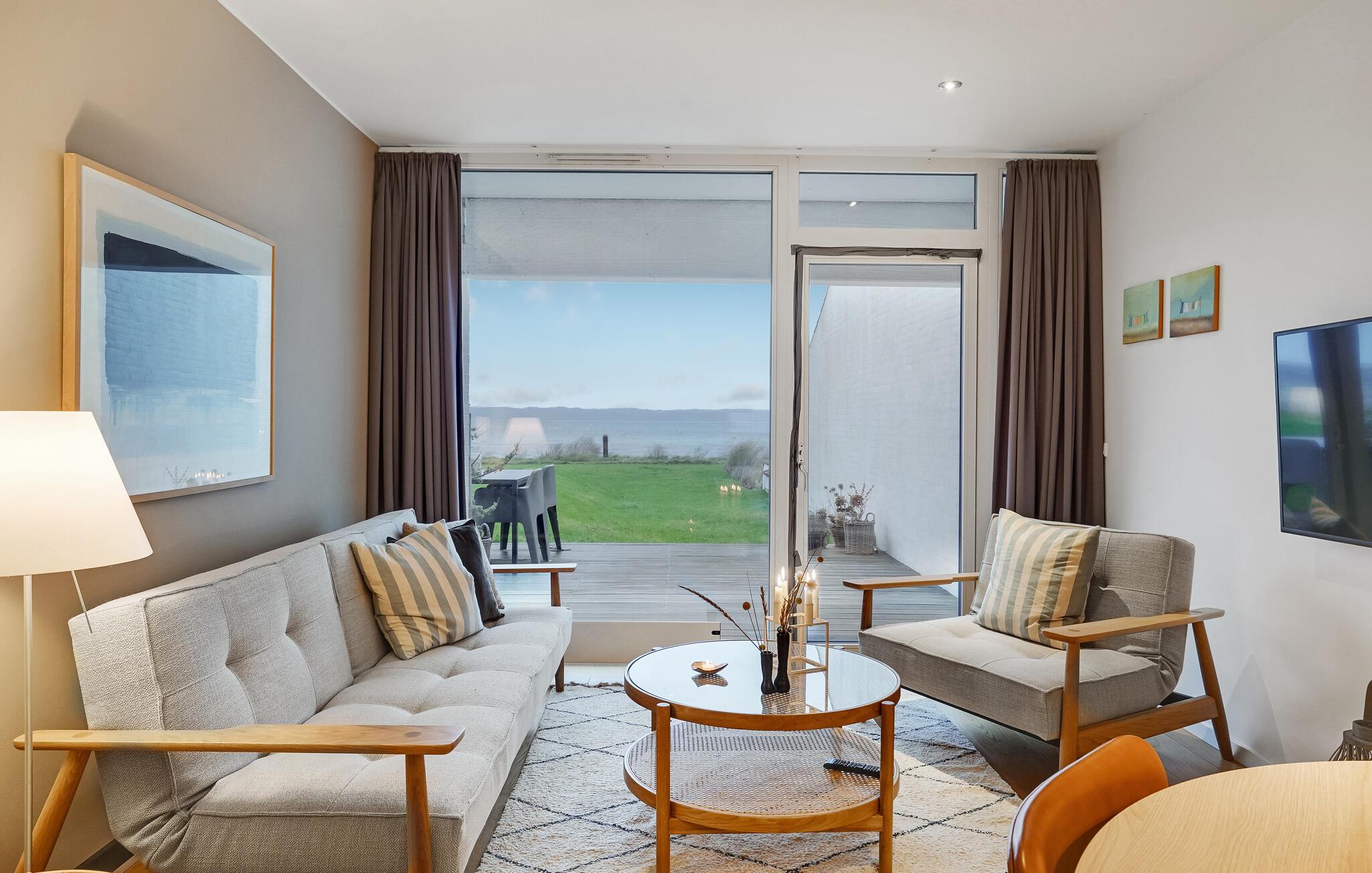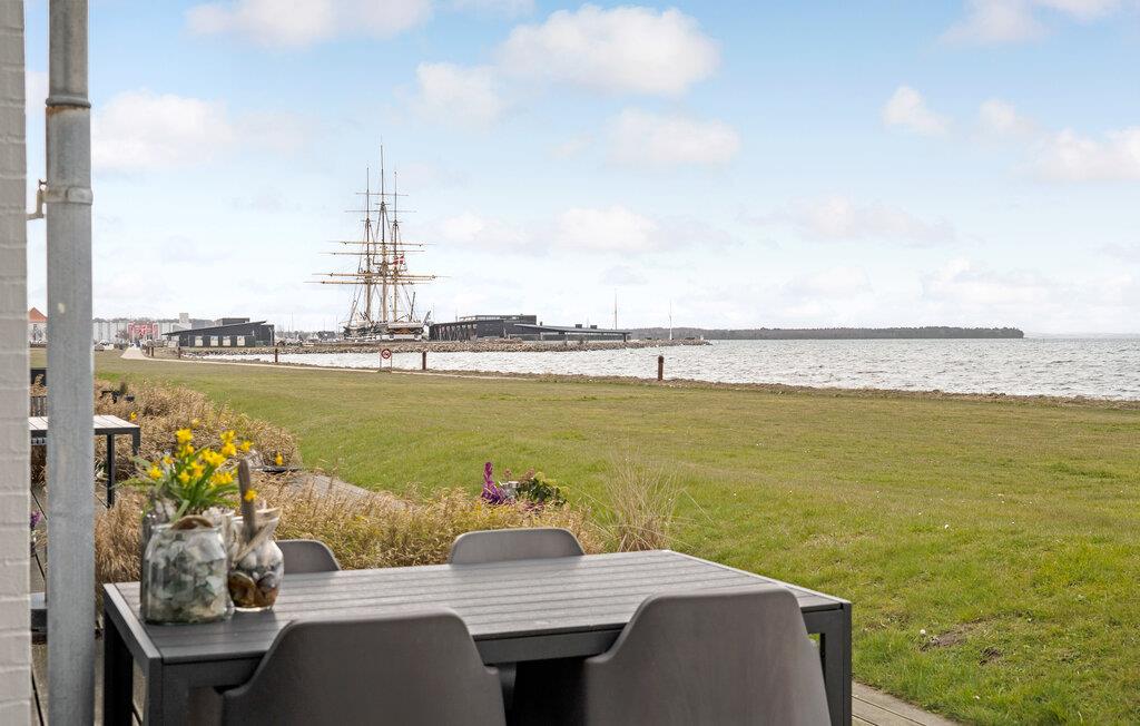 Ontdek dit modern appartement in Ebeltoft met panoramisch zeezicht, dichtbij strand en charmante oude stad.
