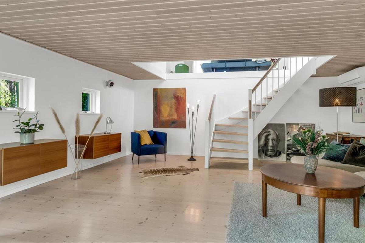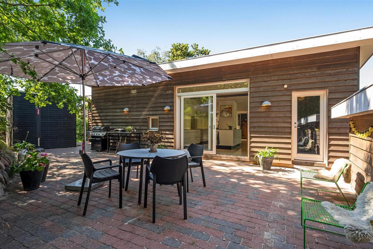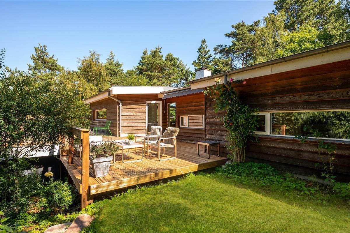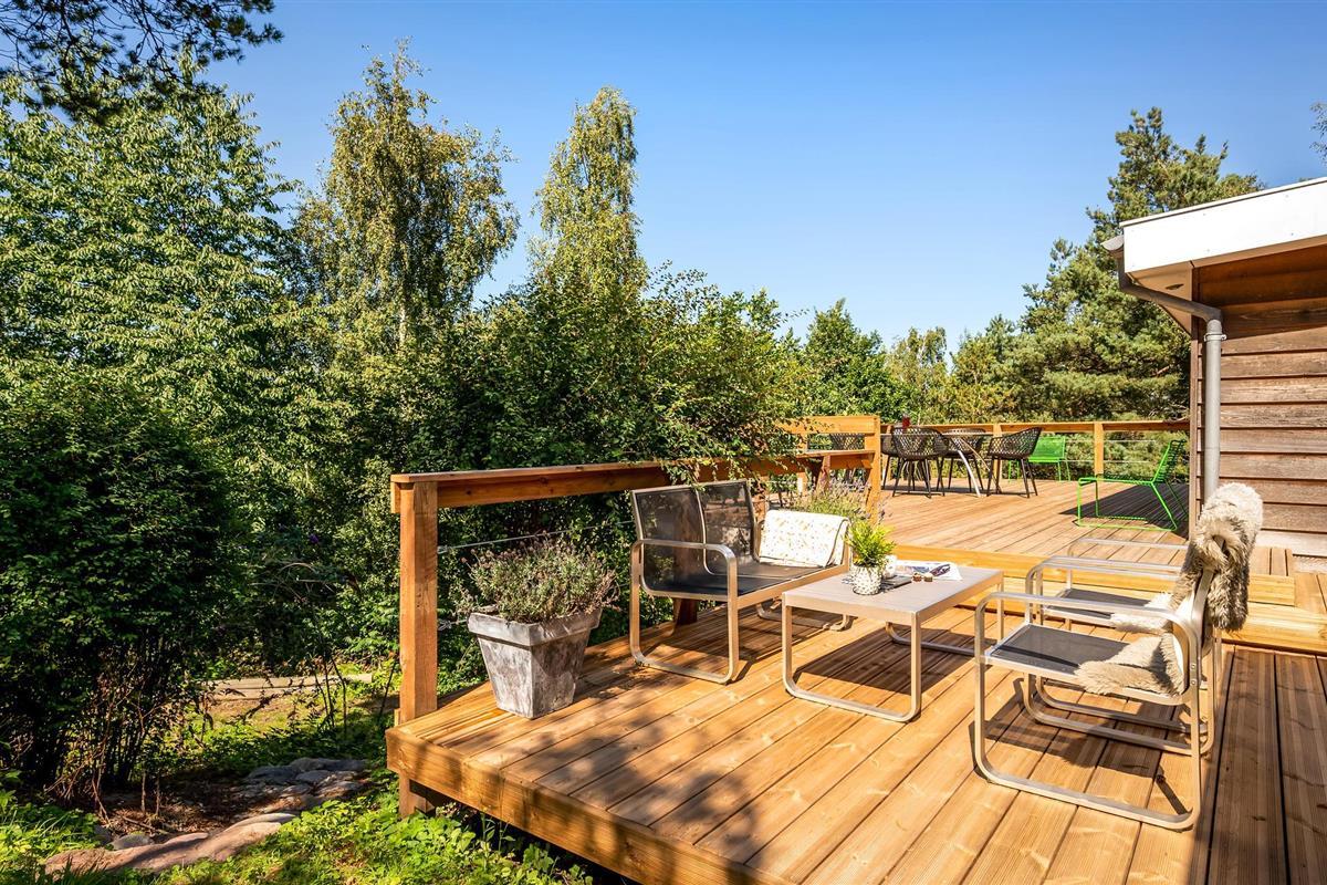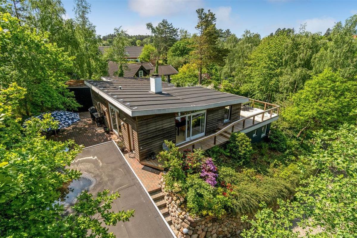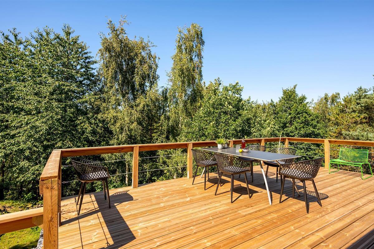 Uniek trapsgewijs vakantiehuis nabij Ebeltoft met stijlvol interieur en zonnige terrassen.