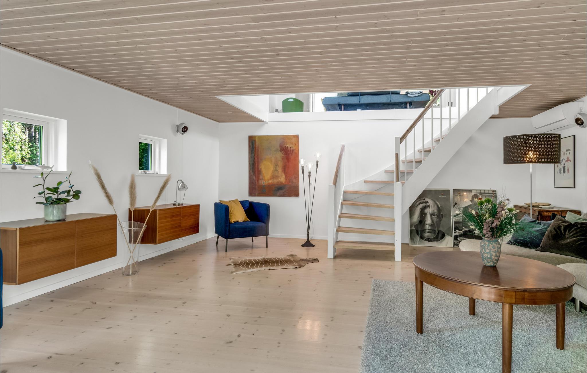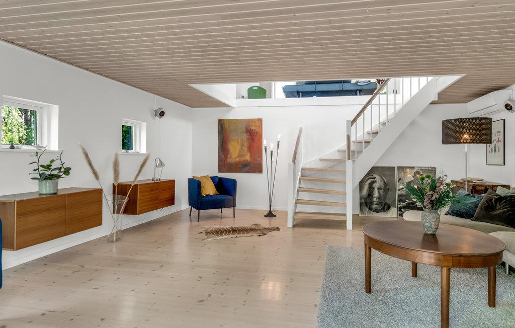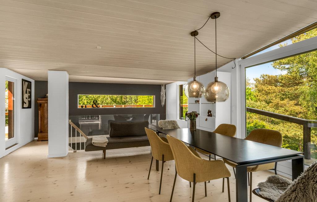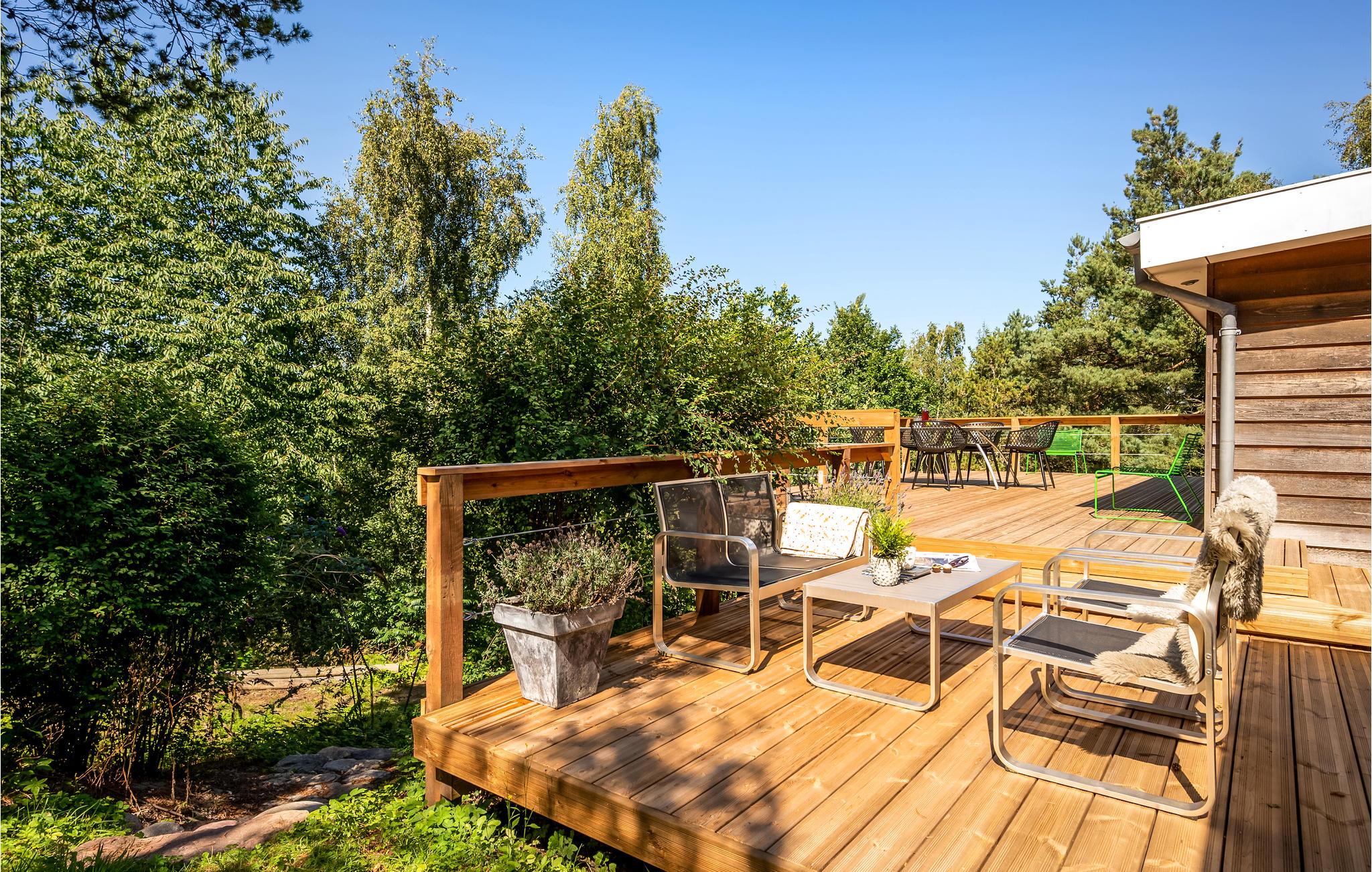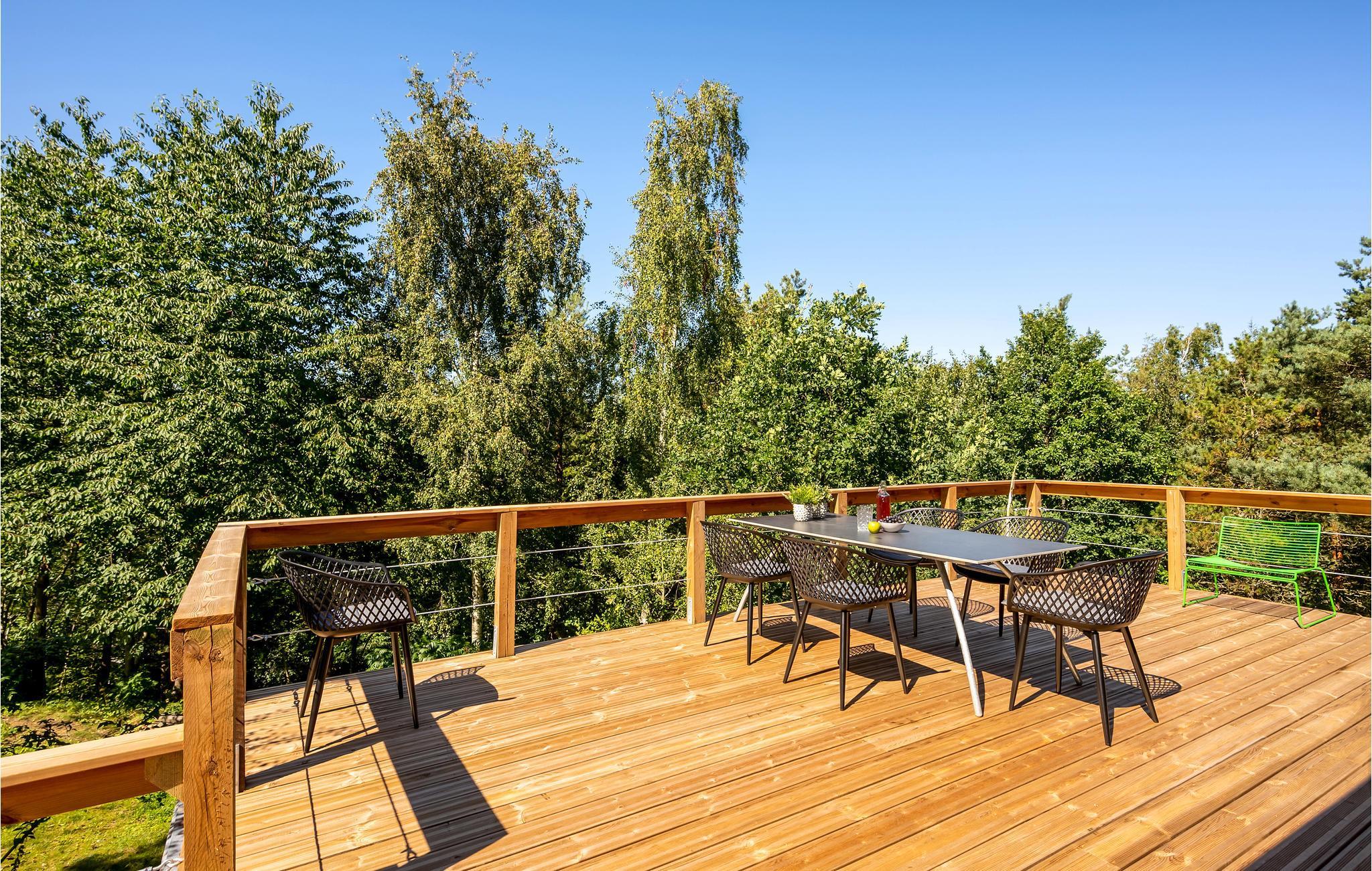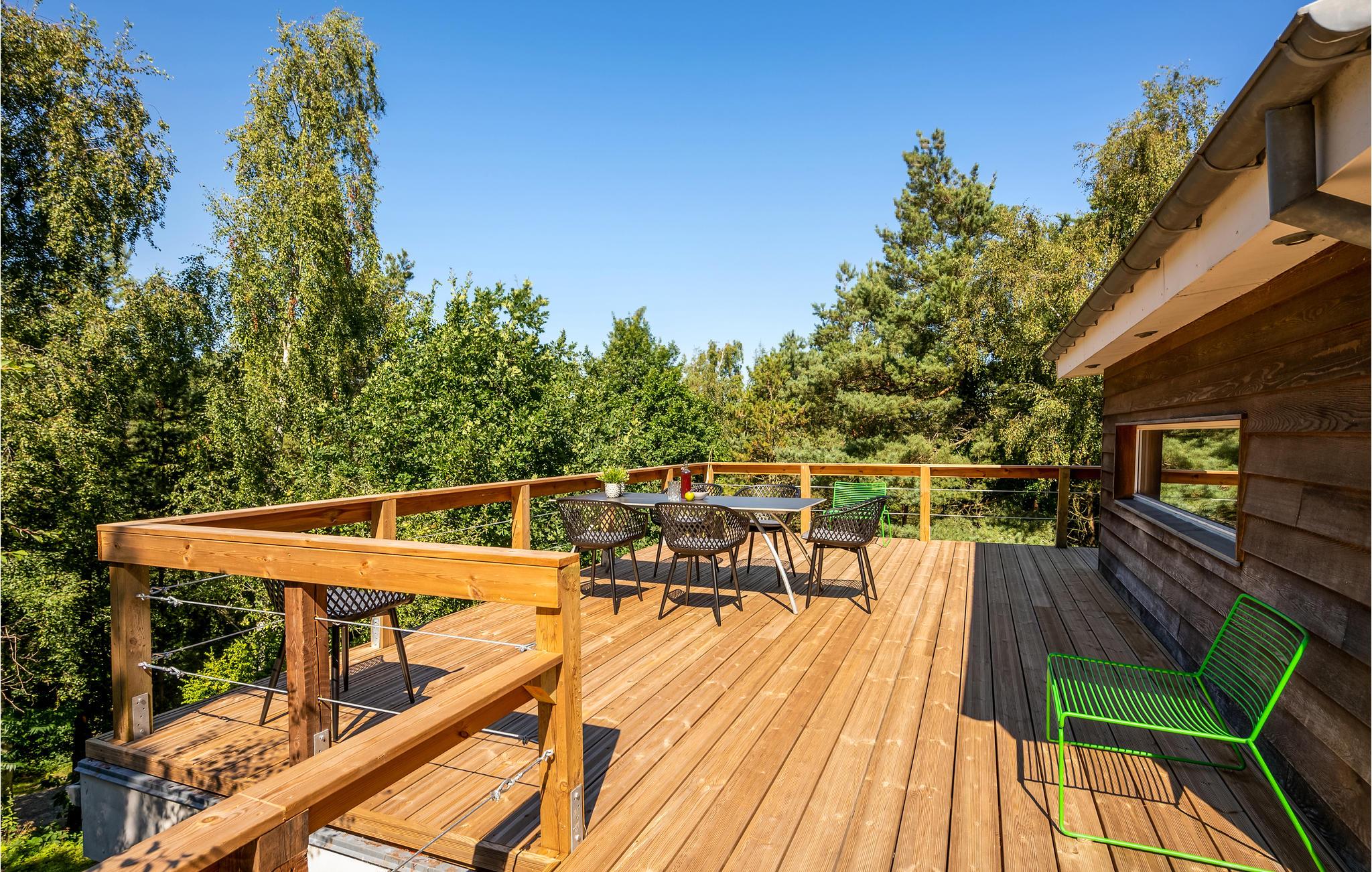 Kom met uw gezin en uw viervoeters naar deze interessante accommodatie met meerdere verdiepingen. De indeling van het huis en het terras bieden een unieke ervaring. Iedereen in het gezin zal hier zijn favoriete plekje vinden. Zowel het terras achter het huis als de trap naar beneden naar de tuin bieden volop ruimte om te zonnen, te ontspannen of zelfs voor het ontbijt en andere maaltijden. Binnen wacht u een stijlvol eenvoudig en smaakvol interieur. Maak het uzelf gemakkelijk en ontspan van de dagelijkse stress.
