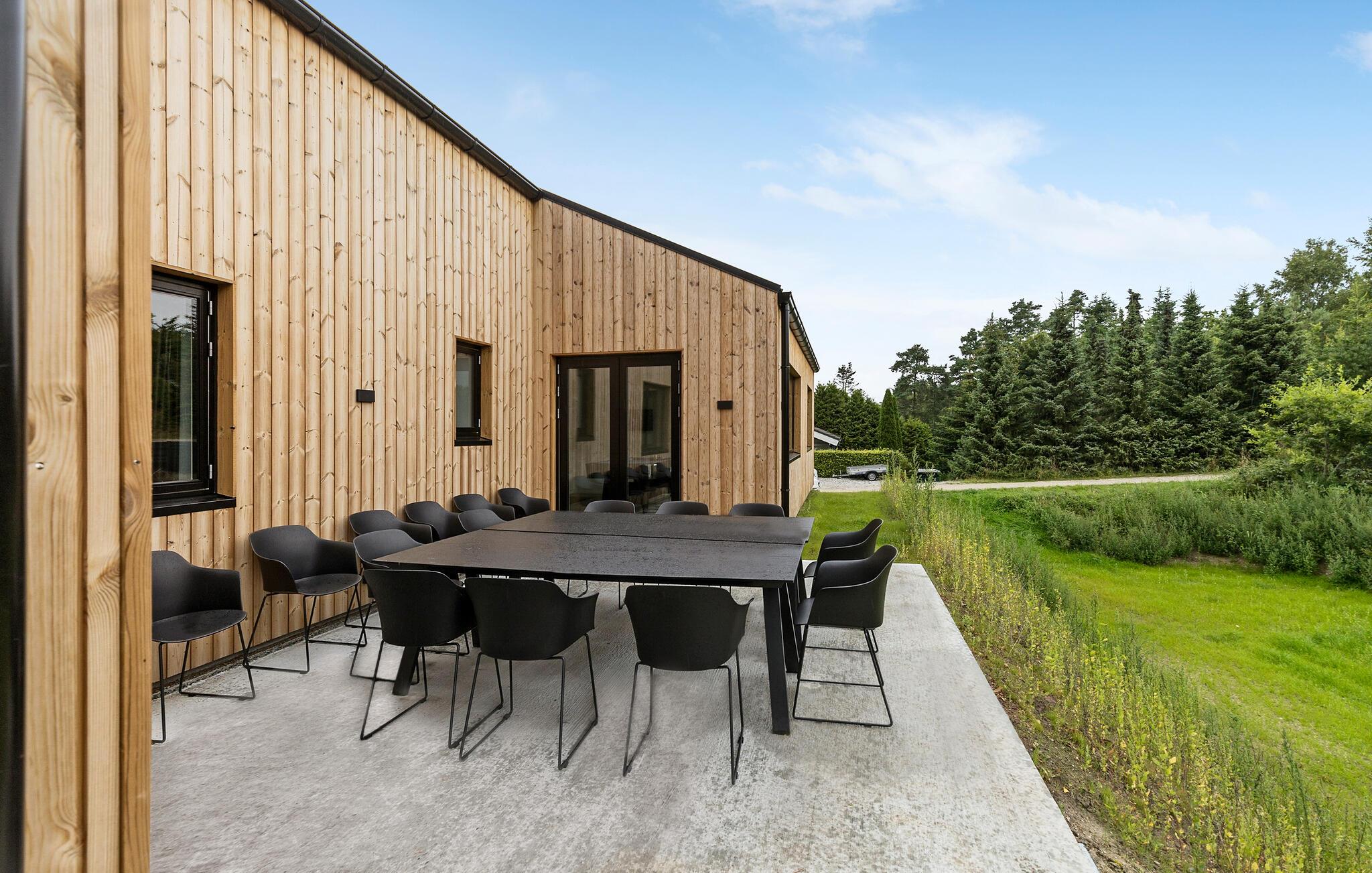 Ontdek dit moderne vakantiehuis nabij Ebeltoft met Finse sauna, hot tub en prachtig uitzicht op het Deense platteland.