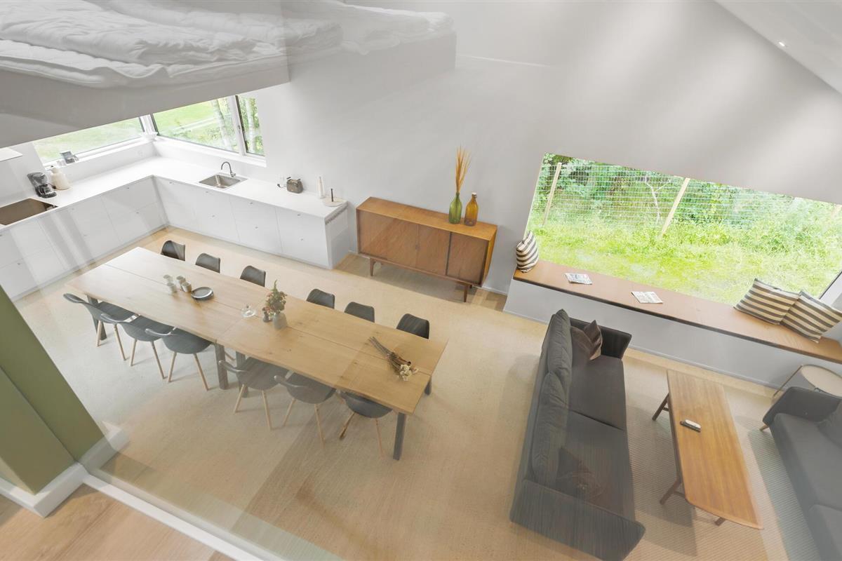Het huis is idyllisch gelegen midden in de natuur en biedt je rust en ontspanning. Het smaakvol ingerichte interieur combineert Scandinavisch minimalisme met gezellig comfort. De lichte, open woonkamer met grote ramen creëert een vriendelijke sfeer en biedt een prachtig uitzicht op het platteland. Je kunt samen koken in de moderne keuken en ontspannen avonden doorbrengen in de uitnodigende zithoek. Het ruime terras nodigt je uit om te genieten van de frisse buitenlucht, buiten te dineren of gewoon te ontspannen.