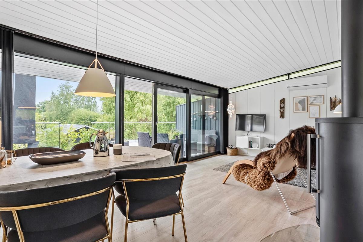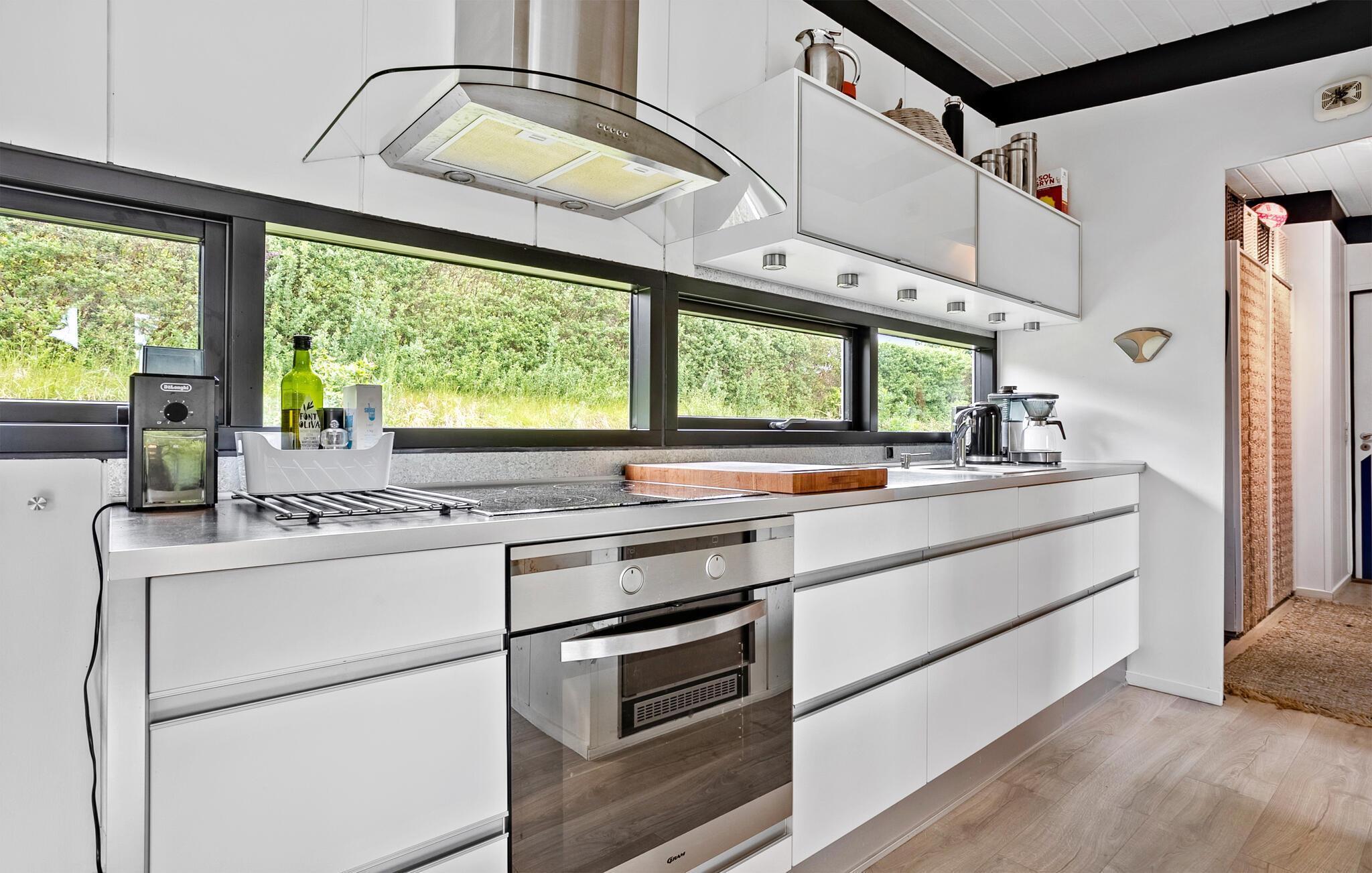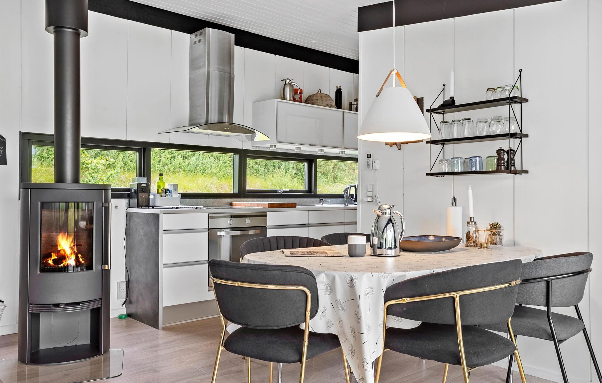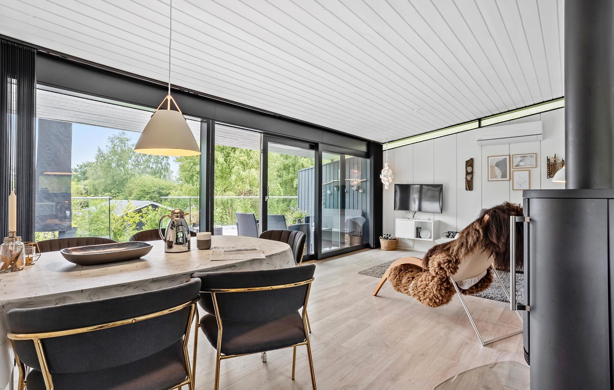 Stap binnen in de open woonkamer met stijlvolle meubels. Ontspan op de grote bank, kijk een film of luister naar het geknetter van de open haard. De moderne keuken nodigt uit om samen te koken. Gebruik je maaltijden aan de aangrenzende eettafel en laat je blik door de grote ramen naar buiten dwalen.