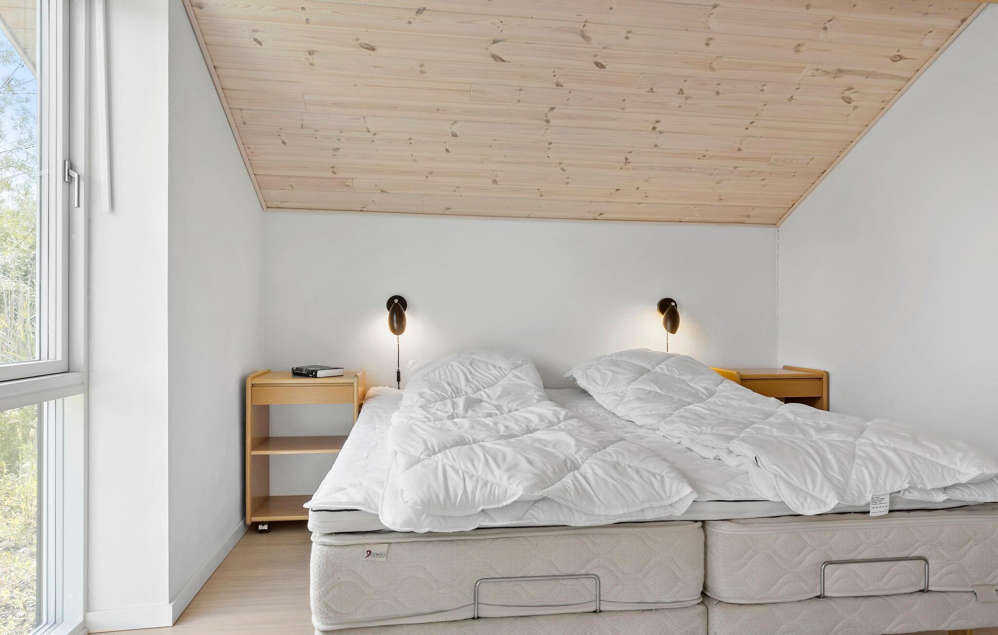 Je moderne vakantiehuis biedt je alle voorzieningen die je nodig hebt voor een ontspannen verblijf. Je vakantiehuis maakt indruk met zijn lichte en open ontwerp, dat wordt benadrukt door de grote ramen en het hoge houten plafondprofiel. Geniet van de gezellige woonkamer met comfortabele banken. Gebruik de moderne keuken, die is uitgerust met alle benodigde apparatuur, om heerlijke maaltijden te bereiden. Neem je maaltijden aan de stijlvolle eettafel en laat je blik door de grote ramen naar de idyllische tuin en vijver dwalen.