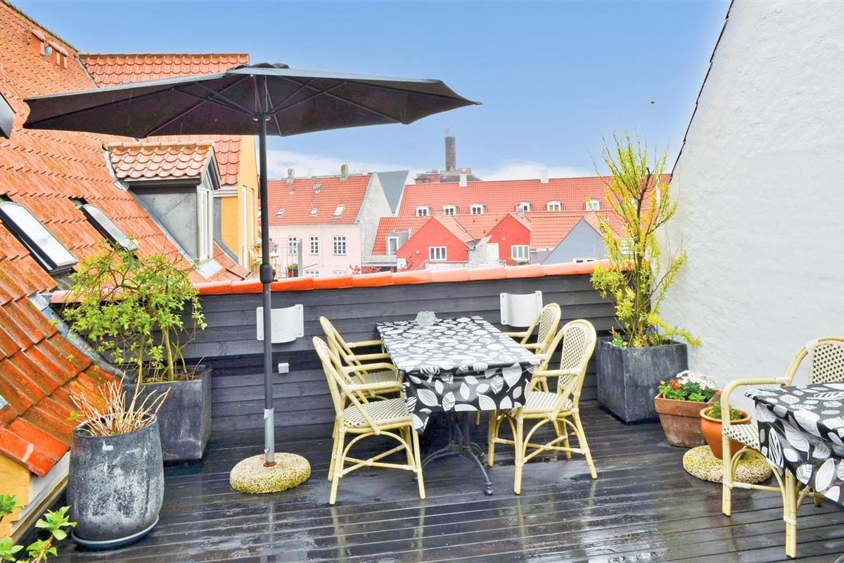 Geniet van een ruim en gezellig appartement in het hart van Ebeltoft, vlakbij het strand en met prachtig uitzicht.