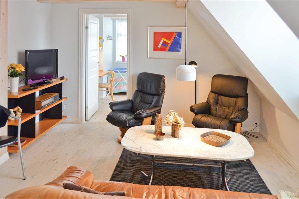 U verblijft in een goed uitgeruste vakantiewoning midden in het charmante stadje Ebeltoft. De geplaveide straten die typisch zijn voor het stadje beginnen direct voor de flat en u duikt zo de omgeving in met prachtige vakwerkhuizen. De flat met twee verdiepingen ziet er erg gezellig en uitnodigend uit met zijn zichtbare plafondbalken. De flat is ruim en daardoor ideaal voor een gezin dat graag centraal woont. De dichtstbijzijnde badzone ligt ook op slechts 400 meter van de flat. U heeft een prachtig uitzicht op de stad vanaf het grote terras met tuinmeubilair. U vindt gratis parkeergelegenheid op loopafstand.