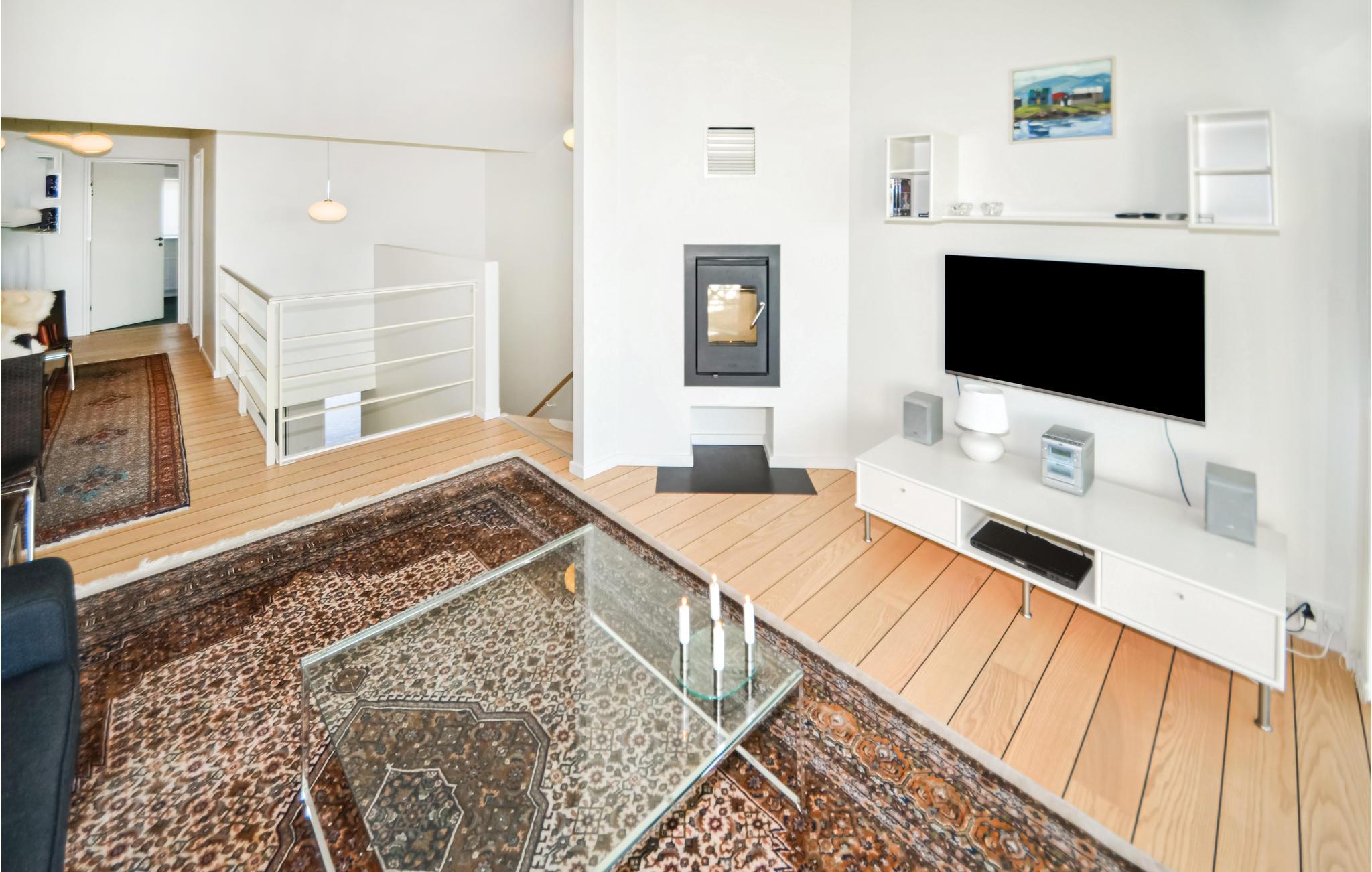 Je stijlvolle vakantieappartement biedt je een 180-graden panoramisch uitzicht door de grote raampuien en geeft je een onbelemmerd uitzicht over de baai. Neem plaats op de bank en geniet van de gezellige sfeer van de moderne woonkamer. Voel de gezellige warmte van het vuur in de houtkachel op koelere avonden. Bereid je maaltijden in de lichte, open keuken. Begin de dag met een ontbijt met uitzicht op zee of rond het af met een glas wijn. Trakteer jezelf op ontspannende uren in de whirlpool na een lange wandeling en bezoek de sauna voor extra ontspanning.