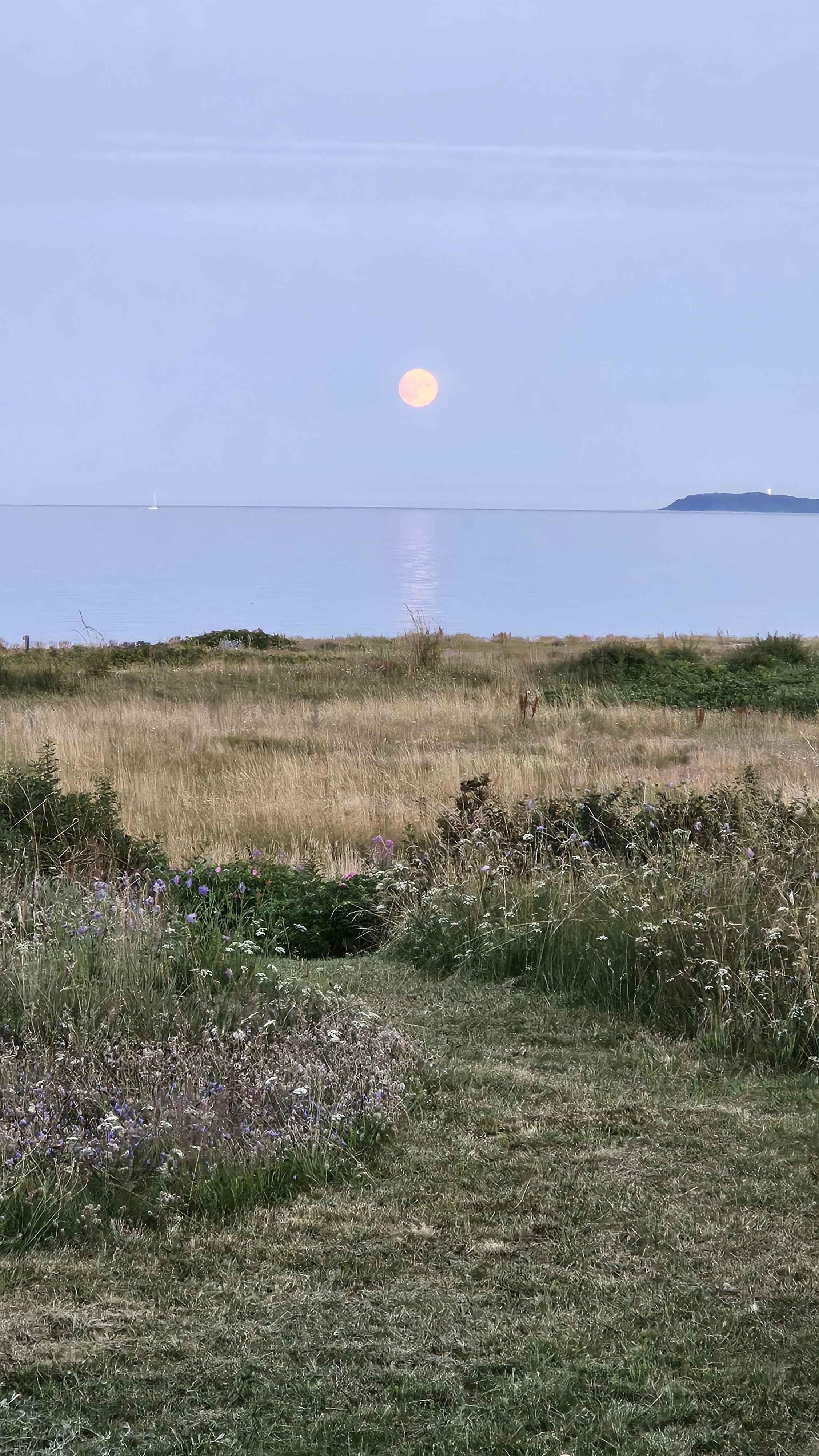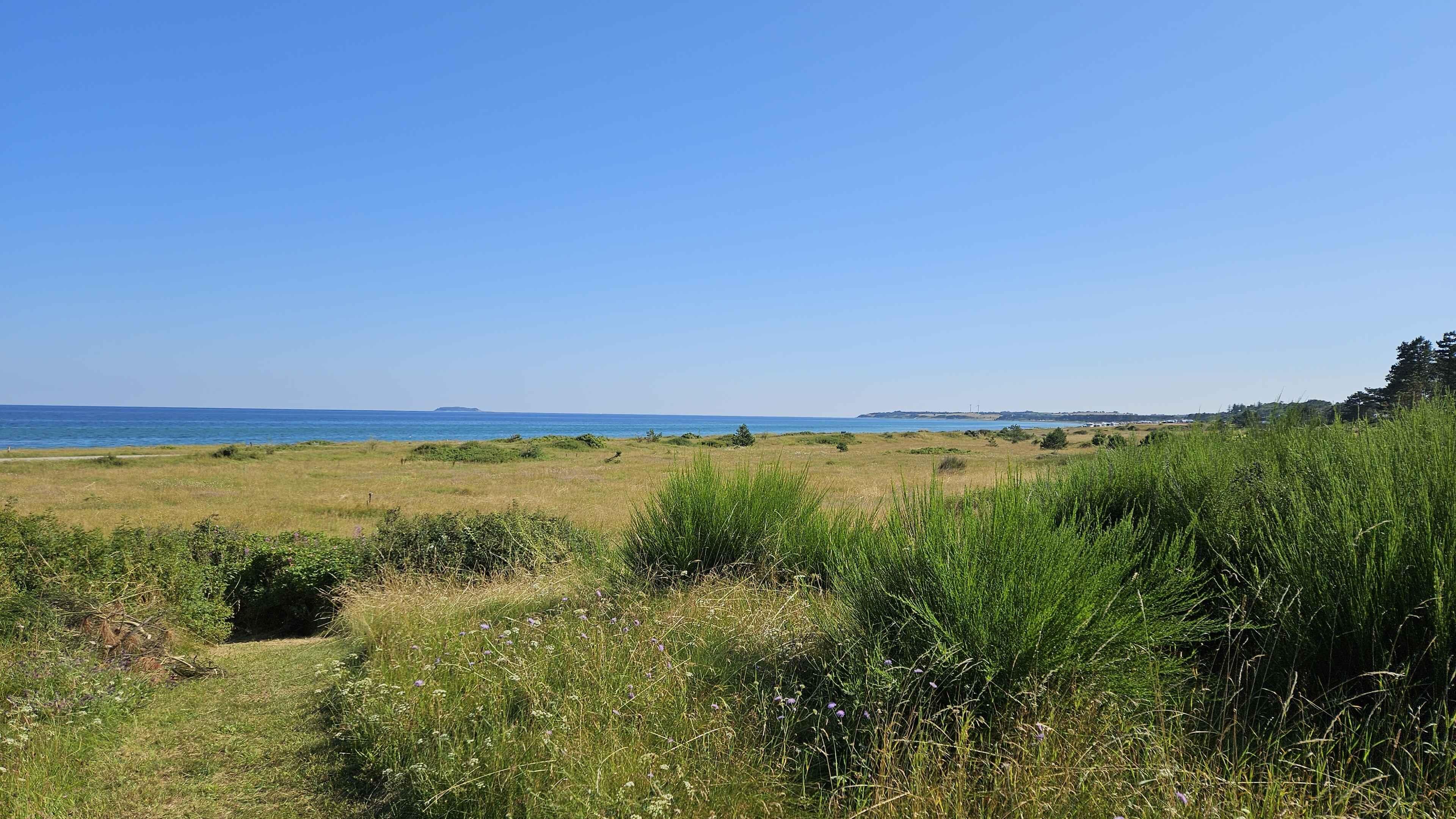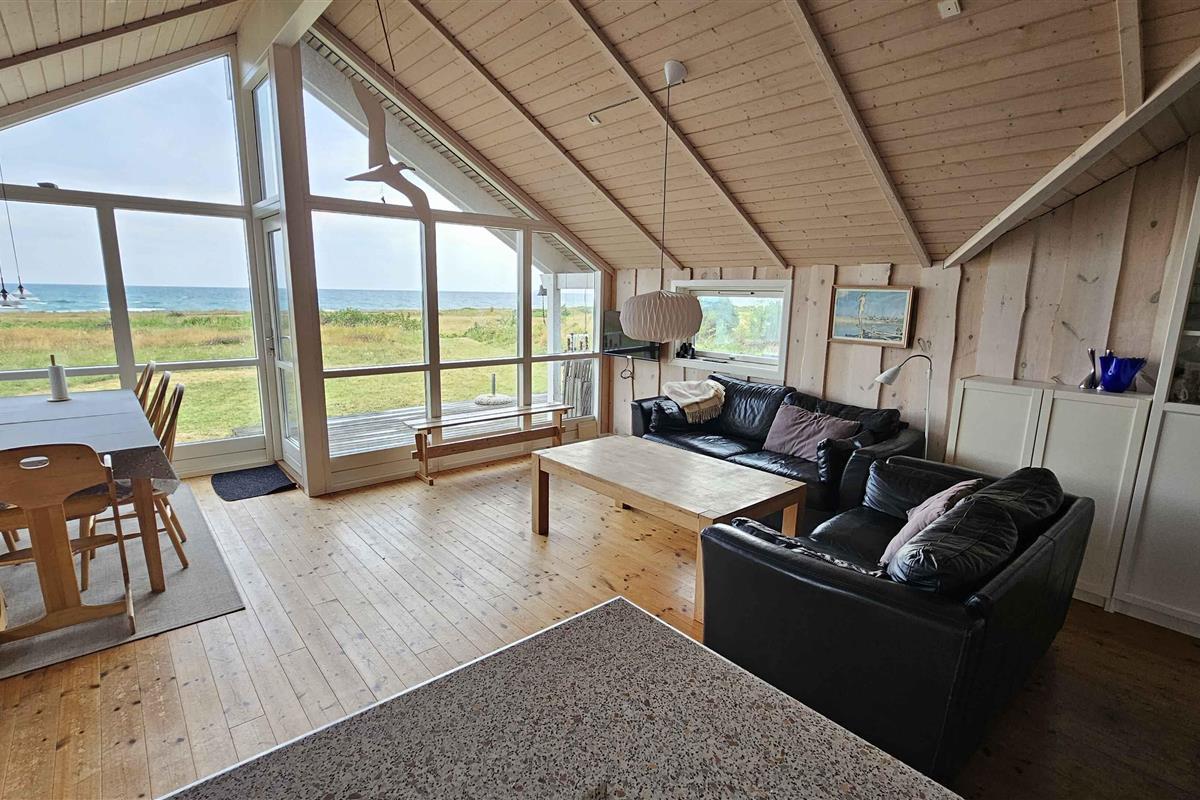 Gezellig vakantiehuis met 180° zeezicht, directe strandtoegang en comfortabele voorzieningen in Ebeltoft, Denemarken.