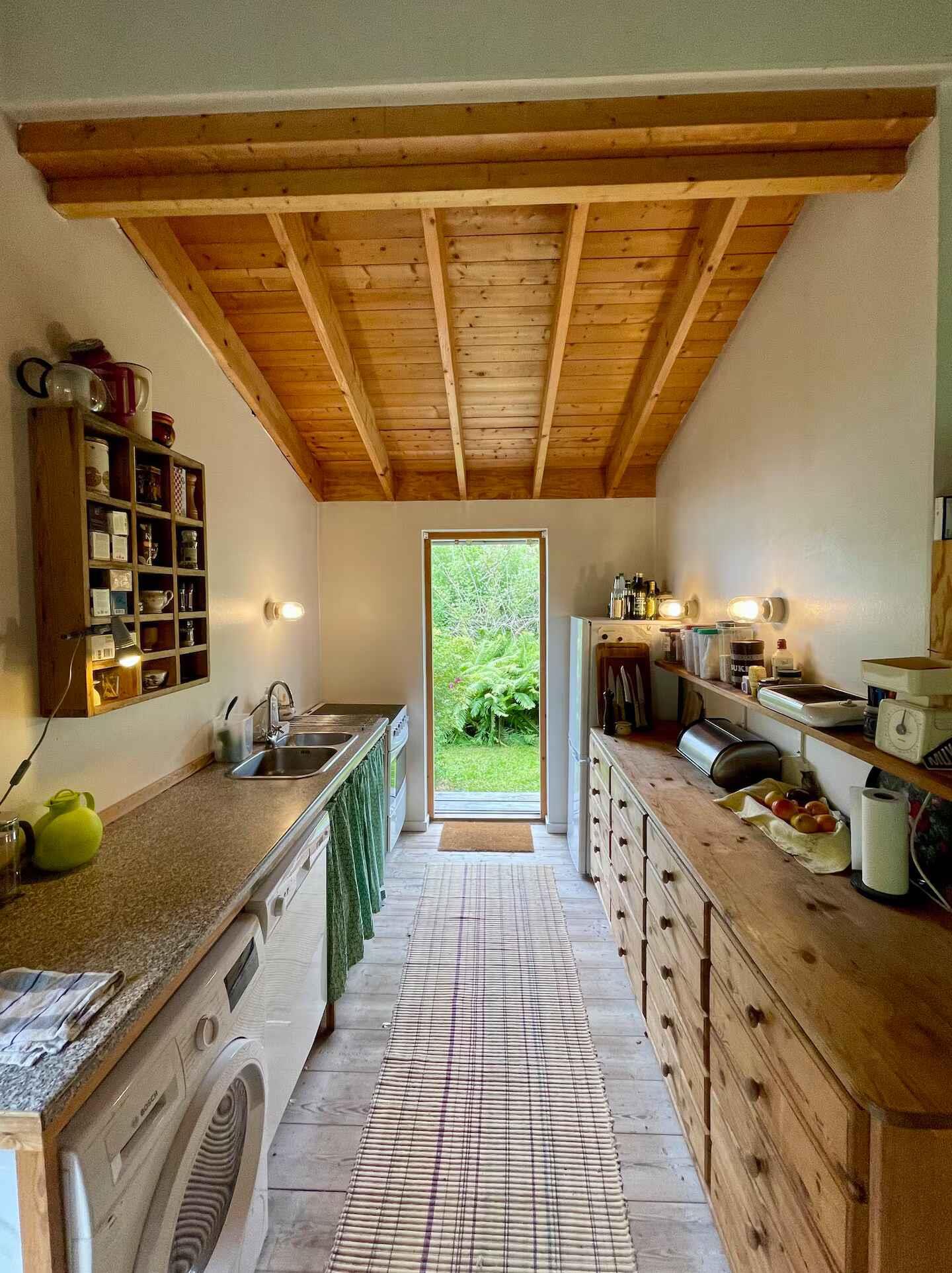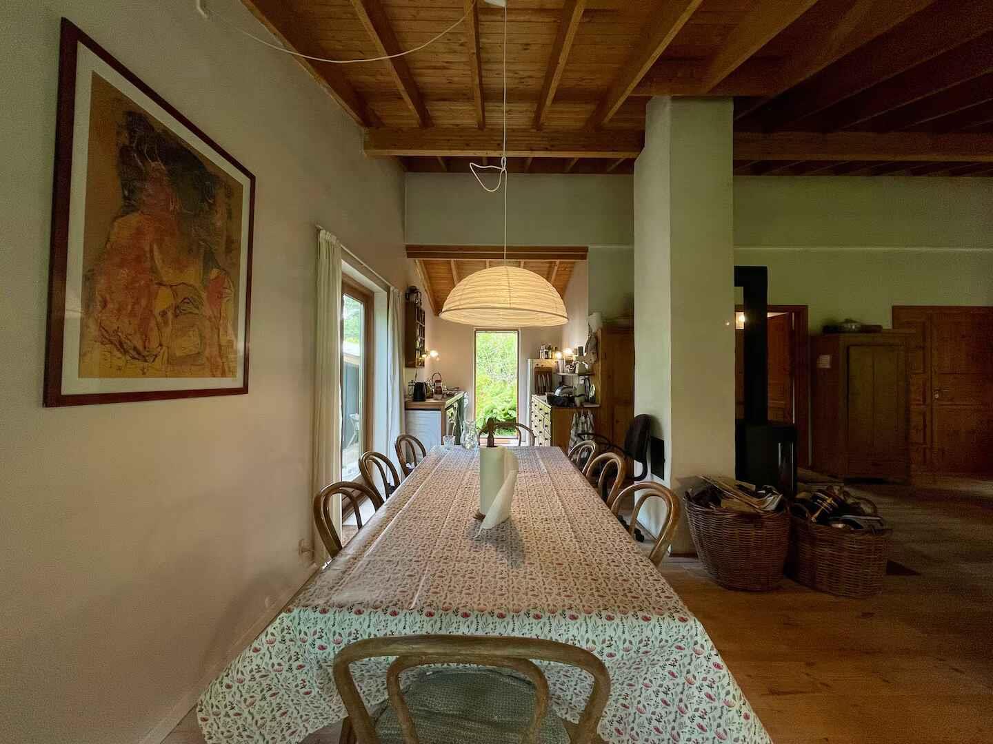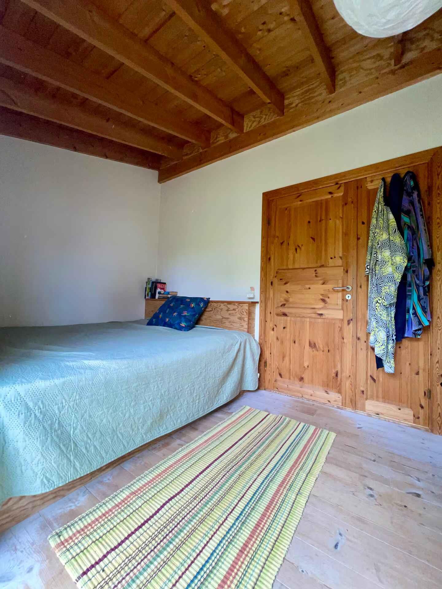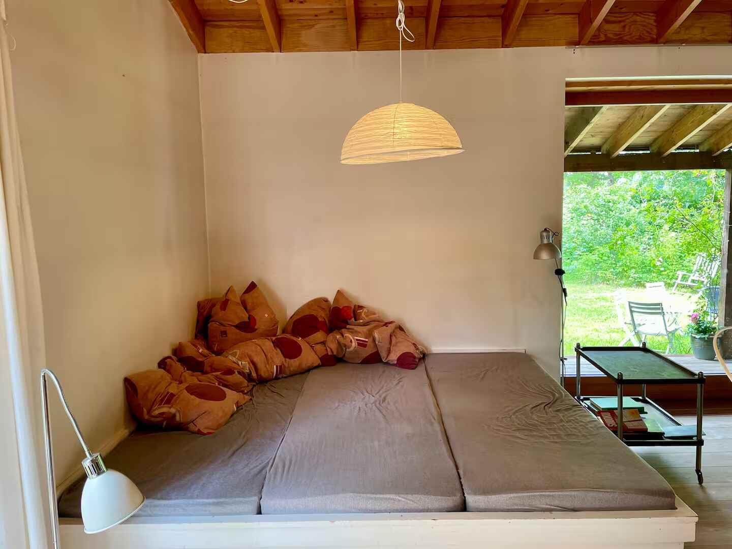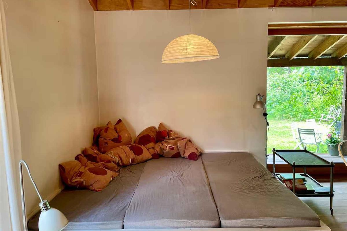 Hier krijgt u een vakantiehuis met een lange familiegeschiedenis. Het perceel vormt al sinds de jaren 1930 het decor voor herinneringen, en veel gasten beschrijven hoe de rust meteen voelbaar is zodra men binnenstapt. Het biedt ruimte om eigen momenten te creëren, groot en klein. Het huis van 95 m² is in 1997 ontworpen en gebouwd door architect Steen Andersen. De constructie van larikshout en lijnolie zorgt voor een natuurlijk en aangenaam binnenklimaat dat uitnodigt tot nabijheid en eenvoud. De woonkamer met hoge plafonds brengt iedereen samen rond koken, spelletjes en gesprekken. Midden in de ruimte vormt de houtkachel een warm verzamelpunt, terwijl een grote daybed aan de andere kant uitnodigt tot ontspanning, spel en stille momenten. De slaapkamer in het hoofdgebouw beschikt over een tweepersoonsbed en een werkplek. In het bijgebouw bevinden zich twee extra kamers, waardoor het huis in totaal drie slaapkamers en zes slaapplaatsen heeft. Grote glazen schuifdeuren openen naar een overdekt terras en een half-wilde tuin die de geest van het huis volgt. Aan de achterkant biedt een brede trap een gezellige plek voor de ochtendkoffie, terwijl een vuurplaats, barbecuefaciliteiten en kleine beschutte hoekjes het buitenleven uitbreiden. Hier vindt u ook buitenspeelgoed, twee paddleboards en de mogelijkheid tot boogschieten voor ervaren gebruikers, zodat de dagen naar wens en weer kunnen worden ingevuld. De omgeving is bijzonder. Het huis ligt in het hart van Mols tussen heuvels en strand, waar het landschap afwisselt tussen kust, open heide en glooiende heuvels met weidse uitzichten. Er zijn wandelpaden, goede fietsroutes, kleine baaien om te zwemmen en rustig water om te paddleboarden. Het sfeervolle stadsleven van Ebeltoft, het glasmuseum en de gezellige haven liggen dichtbij, en de natuur maakt het gemakkelijk om volledig tot rust te komen. Gun uzelf de kans om de rust te ervaren en nieuwe herinneringen te creëren in dit vakantiehuis met ziel.