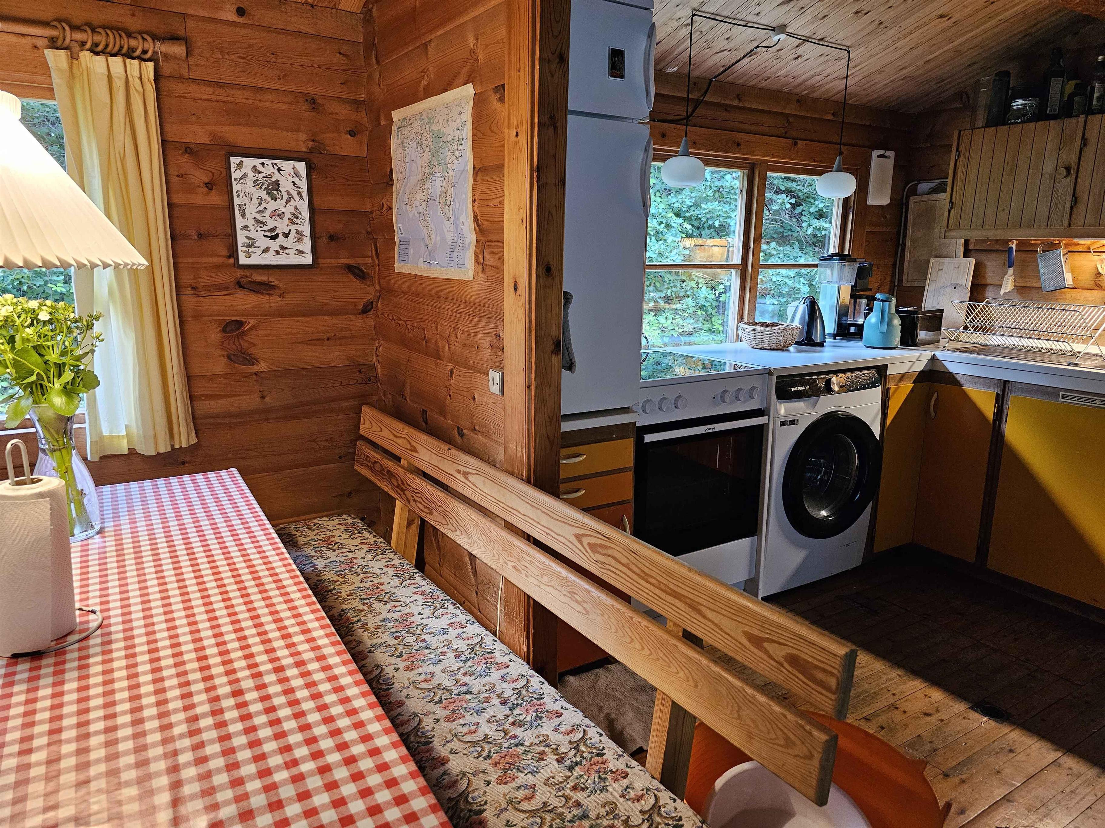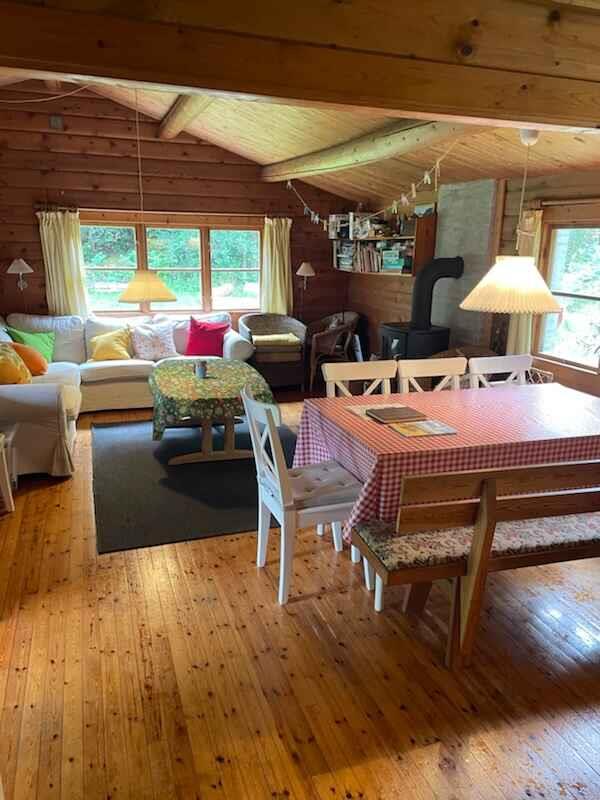 Deze charmante, oudere Noorse blokhut met bijgebouw nodigt uit tot de ideale ontsnapping aan de dagelijkse drukte. Met 3 slaapkamers en ruimte voor 8 personen, plus een kinderbedje, en een bijgebouw met een tweepersoonsbed voor 2, is het perfect voor gezinnen, een groep vrienden, een werkteam of iedereen die behoefte heeft aan rust en stilte. Het huis ligt in een bosgebied midden in Nationaal Park Mols Bjerge. EEN PAD LEIDT HET LAATSTE STUK NAAR HET HUIS. DEZE AFGELEGEN LIGGING MAAKT HET HUIS ONGESCHIKT VOOR MENSEN MET MOBILITEITSPROBLEMEN. Het oudere, gezellige ontwerp creëert een authentieke en ontspannen sfeer. Het is geen luxe, maar perfect voor degenen die willen genieten van de omgeving en samen tijd willen doorbrengen. Er zijn nieuwe matrassen gekomen in augustus 2024 in het hoofdgebouw. Het tweepersoonsbed in het bijgebouw is 200 cm lang en 180 cm breed, de andere bedden in het hoofdgebouw zijn 195 cm lang. Het gebied rondom de woning is een ware schat voor natuurliefhebbers, aangezien het huis midden in een bosgebied ligt waar je wakker wordt van vogelgezang. De omgeving biedt onbeperkte mogelijkheden voor activiteiten en ontspanning. De frisse lucht en de schilderachtige landschappen zorgen voor een geweldige ervaring. Een gezellige wandeling door Mols Bjerge leidt rechtstreeks naar een prachtig natuurstrand met schoon zand, en iets verderop is er een mooie steiger die een extra dimensie geeft aan je zwemsessie. Op het strand vind je een ijskiosk, en net om de hoek ligt een restaurant, café en een kleine supermarkt. Het huis zelf, met zijn rustieke charme, nodigt uit tot sfeervolle avonden. De woonkamer en keuken zijn gecombineerd, wat een gezellige setting biedt voor koken, gezelligheid bij de houtkachel met een van de vele bordspellen van het huis, of gewoon genieten van elkaars gezelschap. Het buitenterras en de vuurplaats zijn ideaal voor buiten eten met de barbecue, en er is volop ruimte om te spelen, spetteren in een zwembad, tenten op te zetten en andere activiteiten rondom het huis te doen. Er is veel brandhout in het gebied rond het huis, en je mag dit gebruiken, mits je nieuw hout hakt en de voorraad weer aanvult. Er zijn ook materialen om een omheining te maken, bijvoorbeeld voor een konijn. Denk eraan om onderdak te bieden, want er zijn arenden in het gebied. Af en toe komen andere dieren uit het bos dicht bij het huis. Het bijgebouw bevat naast een tweepersoonsbed ook een kleine tafel, wat een plek biedt om je terug te trekken om te schrijven, te lezen of gewoon wat tijd alleen door te brengen als je met een groep bent. Er is een wasmachine en de was kan worden gedroogd onder het terras, aan een waslijn buiten of eventueel aan een waslijn boven de houtkachel. Er is busvervoer in de buurt van het zomerhuis, zowel naar Femmøller Strand met een kleine supermarkt als naar Ebeltoft, een van de meest populaire vakantiebestemmingen van Denemarken, met het prachtige oude stadhuis, vakwerkhuizen en de vele winkels, restaurants en cafés in de smalle, met kinderkopjes geplaveide straatjes, waar markten, activiteiten en levendigheid de hele dag door plaatsvinden en waar de nachtwakers hun ronde doen en de zon onder zingen. Er is ook een bus van het zomerhuis naar Rønde, waar goede winkelmogelijkheden zijn, evenals meerdere cafés, een apotheek en kleine winkels. Van daaruit zijn er bussen verder naar Aarhus. Als je geen auto hebt, kun je ook gebruik maken van Flextrafik. Het hele gebied is vol met toeristische attracties en spannende activiteiten voor zowel kinderen als volwassenen op korte rijafstand. Naast bos en strand en de stad Ebeltoft zijn er ook de Fregat Jylland, het Glasmuseum, Ree Park, Kalø Slot, het Scandinavisch Dierenpark, Djurs Sommerland, Gl. Estrup Herregårdsmuseum en nog veel meer. Er zijn meerdere aanbieders van paardrijden op IJslandse paarden en vismogelijkheden, en er zijn ook een paar natuurcentra. Voor wellnessliefhebbers zijn er veel opties, waaronder Lubker Spa en Wellness, waar de hele familie kan zwemmen of van de waterglijbanen kan genieten, of je kunt naar Rønde voor een Thaise massage bij Suksabay. Let op: Niet te huur voor commercieel gebruik.