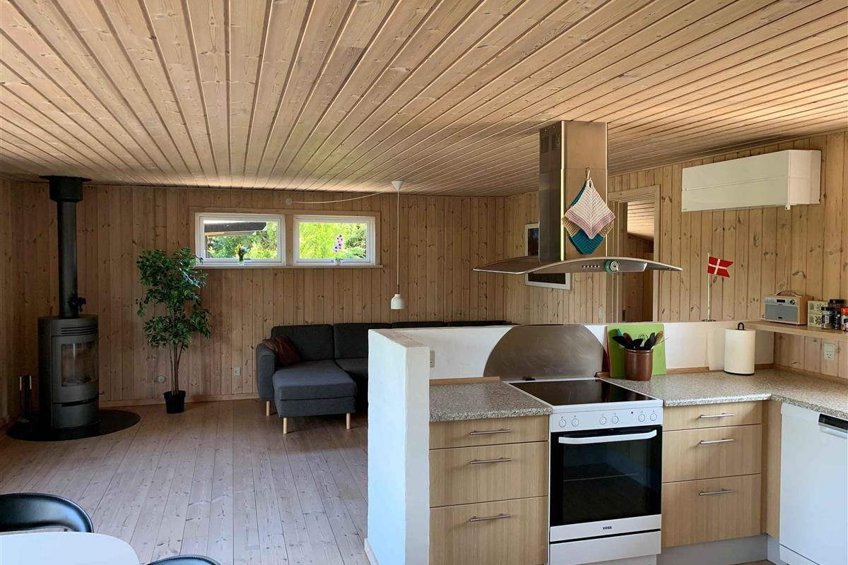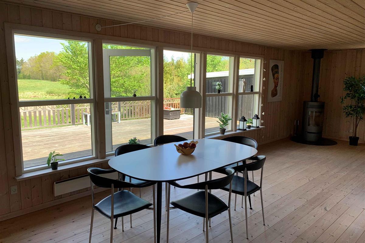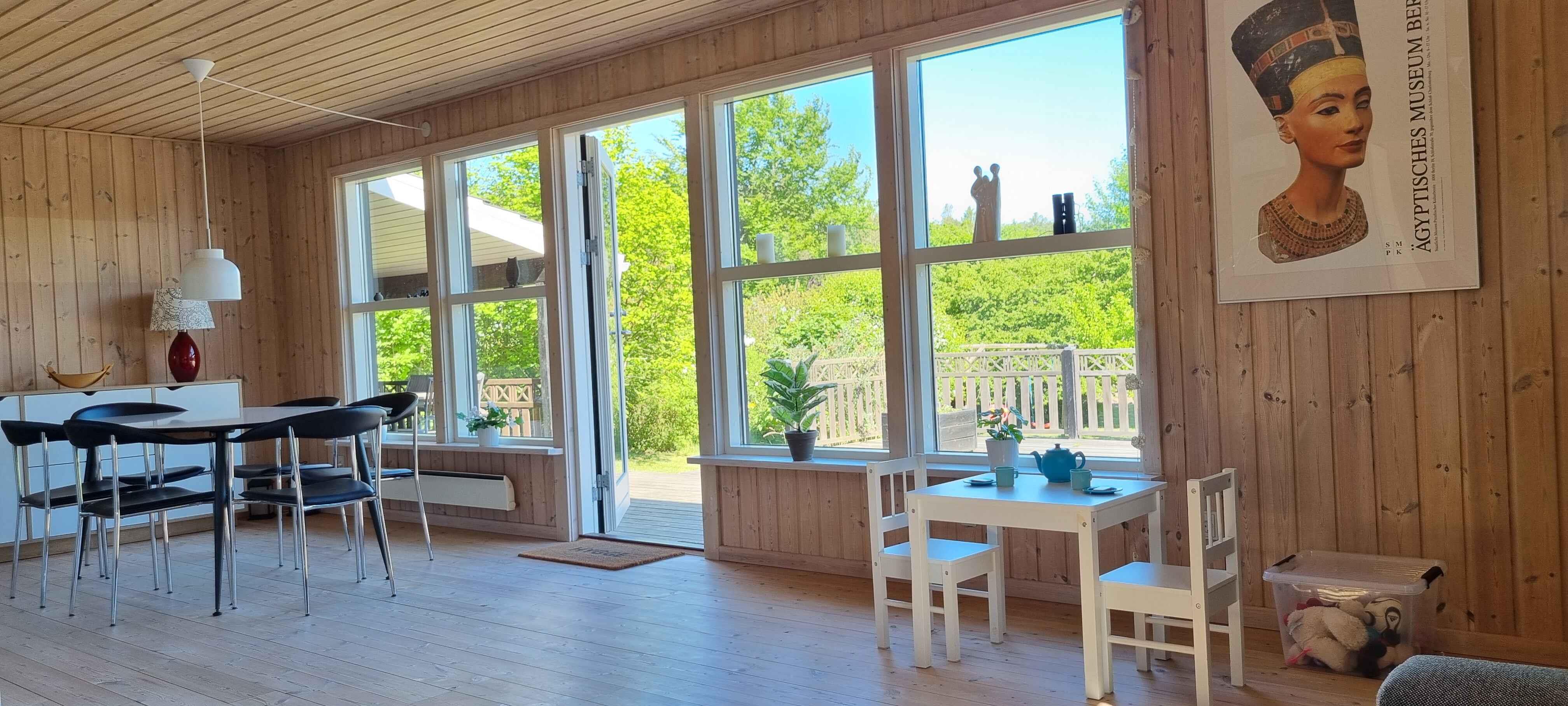 Welkom in ons gezellige huisje in Fuglslev. Het huis is modern en licht ingericht met 6 slaapplaatsen verdeeld over 3 kamers. Het huisje is 82 m² en werd gebouwd in 2005. Het ligt op een groot natuurlijk perceel van 1.110 m². Het strand van Ebeltoft ligt op 8 km afstand. De dichtstbijzijnde supermarkt ligt op een afstand van 3 km. Het huisje is uitgerust met een energiebesparende lucht-lucht warmtepomp (zowel voor verwarming als koeling). Er is ook een wasmachine met geïntegreerde droger. Daarnaast is er een houtkachel. Voor de kleintjes is er een kinderstoel en een wieg. De keuken is uitgerust met een koelkast/vriezer, fornuis, afzuigkap en vaatwasser. Er is een badkamer met douche en toilet en vloerverwarming. Bij het vakantiehuis hoort een groot, open terras met uitzicht op velden/bossen, waardoor je buiten van de zon en maaltijden kunt genieten. Daarnaast is er een goed overdekt terras. Het Fuglslev-gebied is een groot vakantiehuisgebied centraal gelegen op Djursland en op ongeveer 10 minuten rijden van de stad Ebeltoft. Er is een korte rijafstand tot de meeste attracties in de omgeving. Hier is een ruime keuze aan attracties zoals: Djurs Sommerland, Randers Regnskov, Kattegatcenteret, Ree Park Safari en Skandinavisk Dyrepark. Verken ook het nationaal park Mols Bjerge en ga winkelen in Grenaa of Ebeltoft.