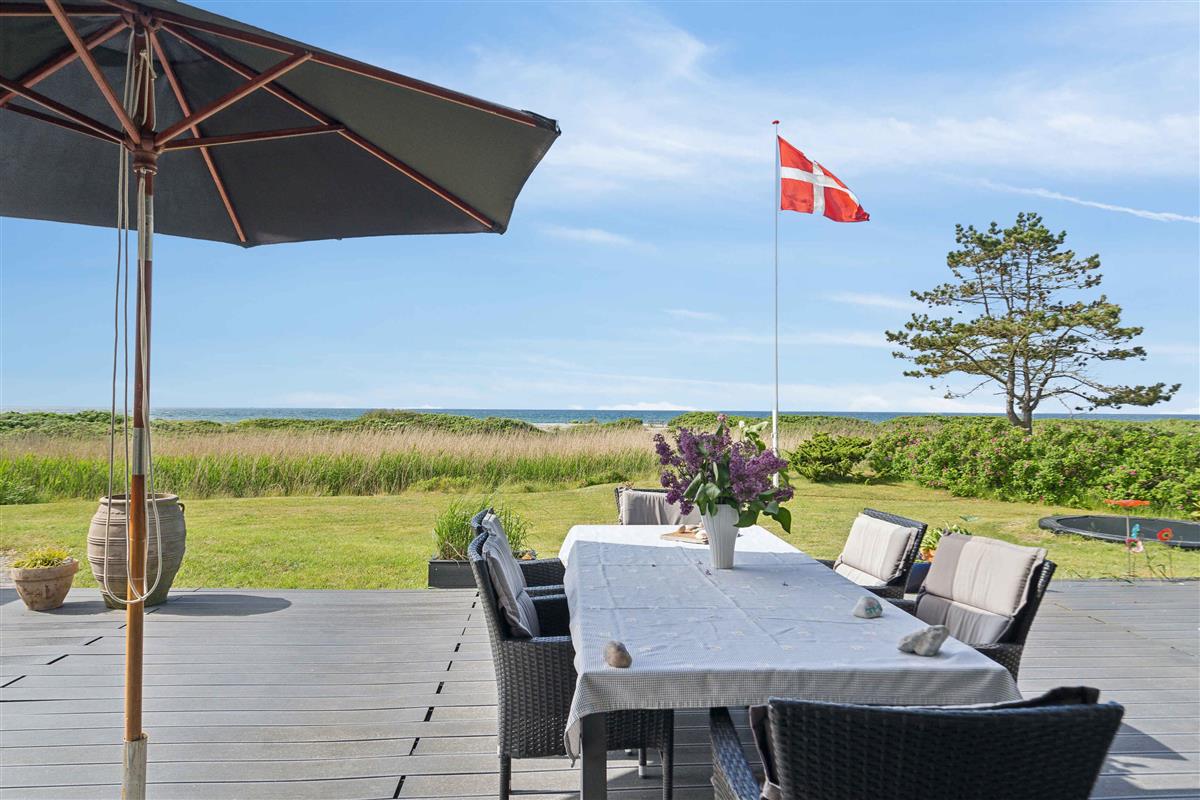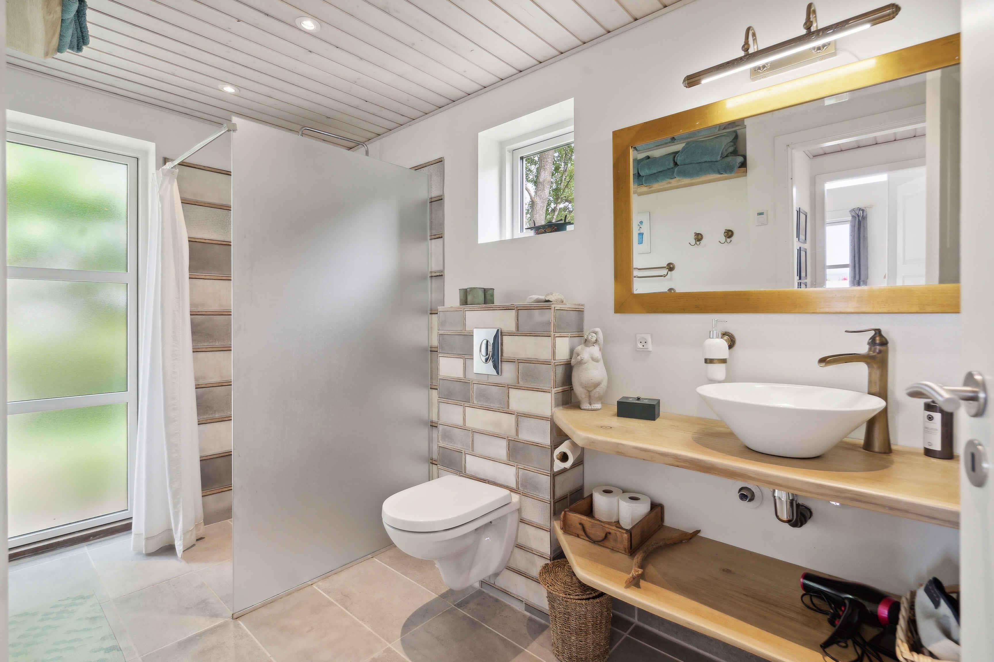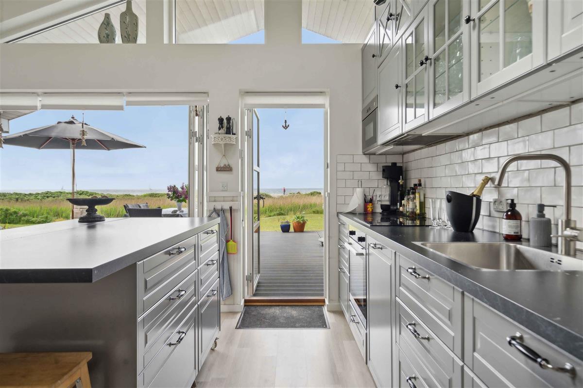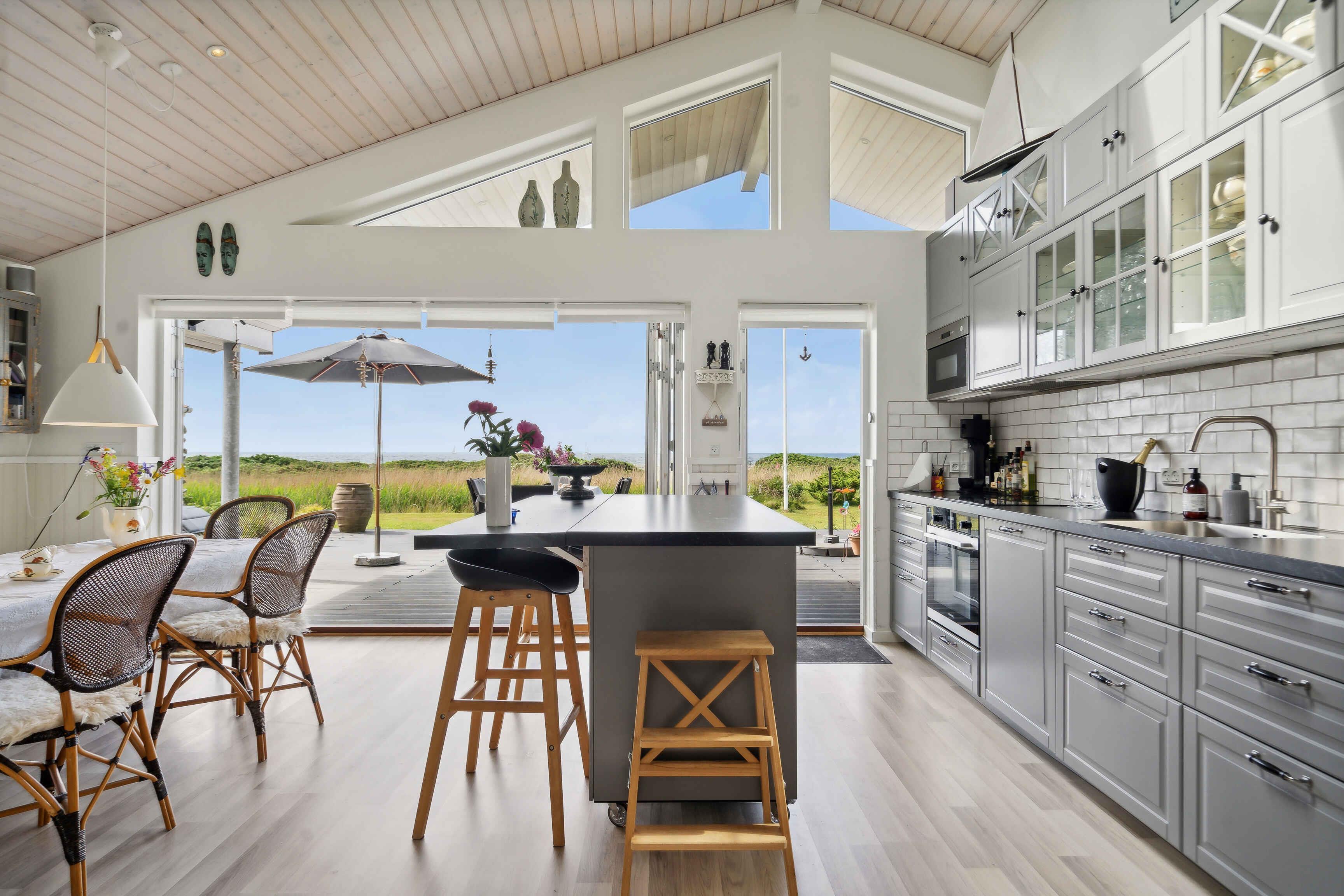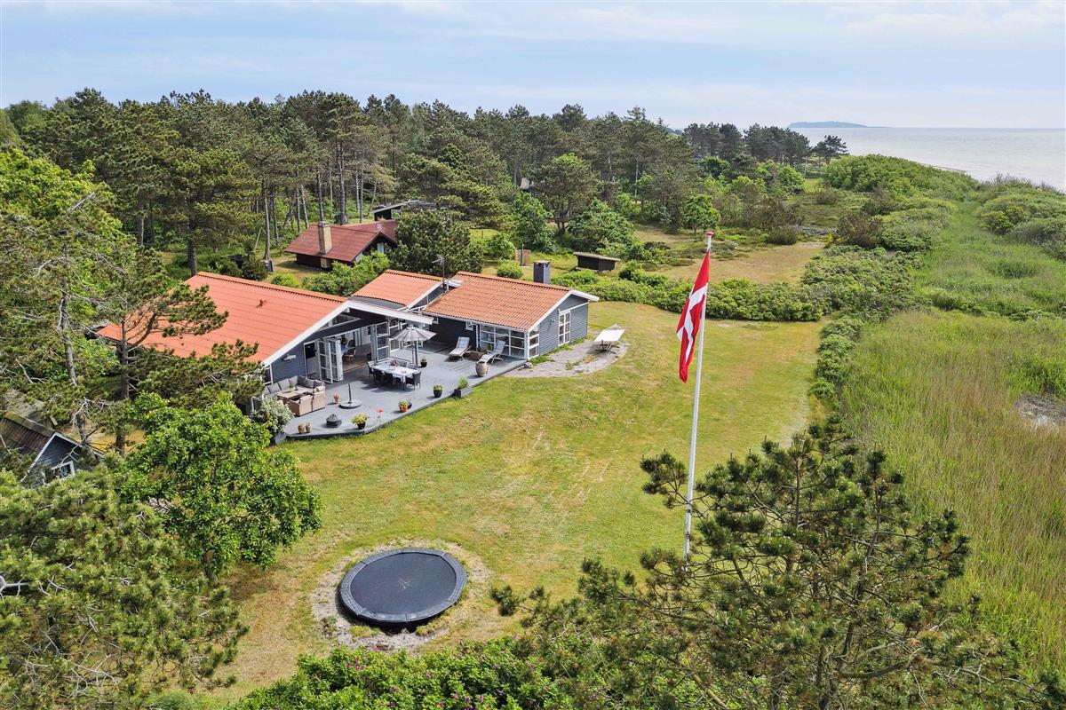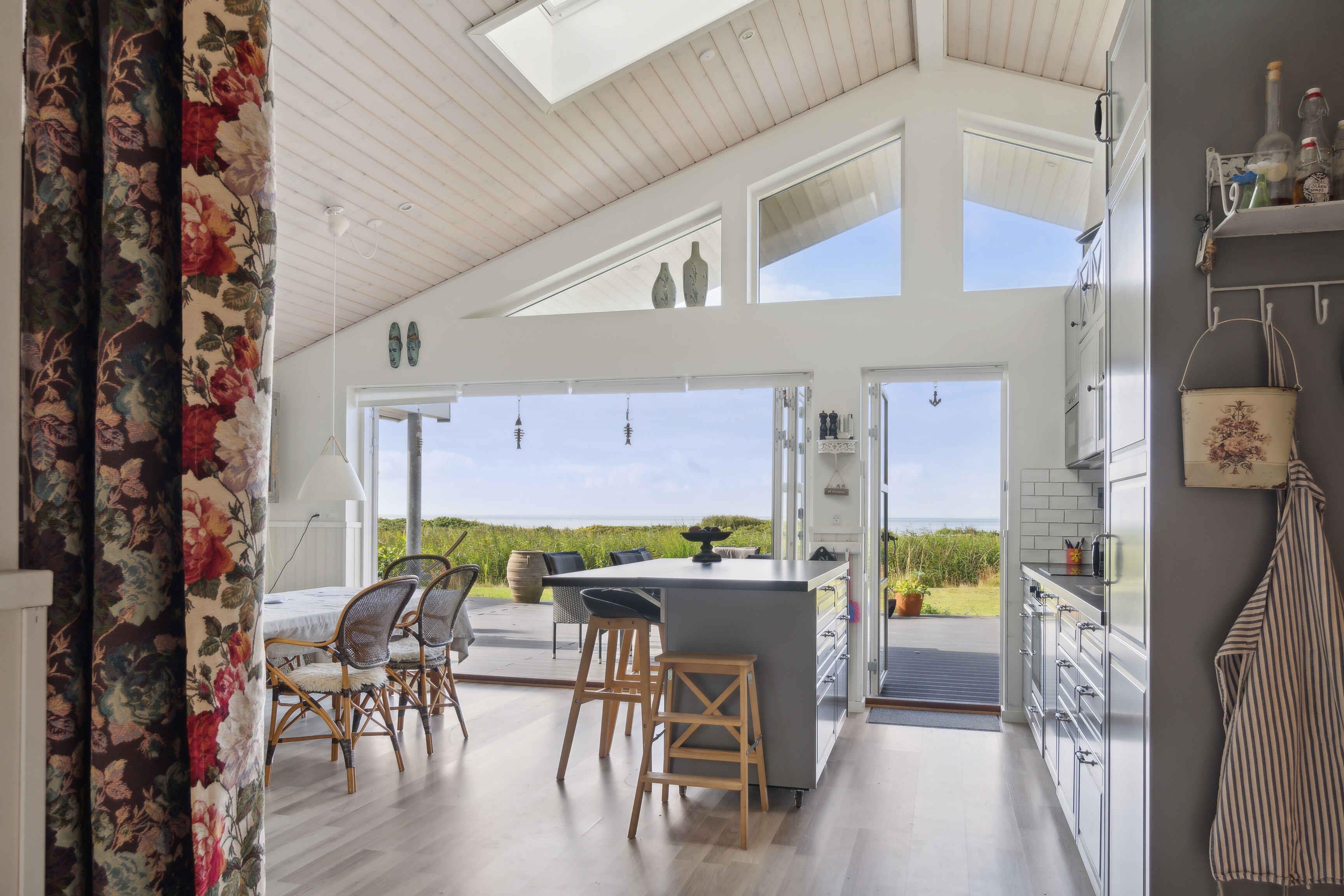 Dit unieke zomerhuis dicht bij Ebeltoft, gelegen in de allereerste rij en op 50 m van de zee, is de perfecte plek voor een ontspannen of actieve vakantie. Het huis is 140 m² en met meerdere slaapkamers is er volop ruimte voor maximaal 8 personen. Dit maakt het huis ideaal voor zowel grote gezinnen, meerdere generaties als groepen vrienden. Het huis presenteert zich in een prachtige blauwe kleur, die mooi samensmelt met de omliggende schilderachtige omgeving. De grote panoramische ramen en de ruime terrassen nodigen gasten uit om te genieten van het prachtige uitzicht op de zee en het omliggende landschap. Vanaf het terras heeft men bovendien uitzicht op speelruimtes, waar schommels, een trampoline, een zandbak en verschillende spellen optimale mogelijkheden bieden voor plezier voor alle generaties. Binnen biedt het zomerhuis een charmante inrichting, waar eigenzinnige vondsten van vlooienmarkten, moderne gemakken en een strandhotelsfeer het verblijf tot iets heel bijzonders maken. Het interieur is licht en uitnodigend met een grote open leefruimte, die een comfortabele woonkamer, eetruimte, een alkoof en een zolder ingericht voor kinderen omvat. De grote leefruimte kan worden geopend naar het 100 m2 grote terras, en de leefruimte bevat een volledig uitgeruste geïntegreerde keuken. Er zijn twee moderne badkamers. Het huis is ingericht in twee afdelingen, die de mogelijkheid bieden om zich in alle rust terug te trekken. De eigenaren van het huis hebben voldoende ruimte gecreëerd voor gasten en vertrouwen erop dat men goed zorgt voor de vele persoonlijke spullen in het huis. Dit zomerhuis is de perfecte toevluchtsoord voor degenen die willen genieten van de schilderachtige omgeving van Ebeltoft, die een bezoek aan de historische stad Ebeltoft met musea, een voetgangersgebied en de haven met zijn eigen charme biedt, waar vroege vogels de kans hebben om verse vis direct van de kotter Margrethe te kopen. Nationaal park Mols Bjerge biedt unieke natuur, en vanaf het zomerhuis kan men lange wandelingen langs het water maken. Men kan zich ook laten uitdagen op het nabijgelegen mountainbikepad of profiteren van de vele watersportmogelijkheden. Men kan ook gewoon genieten van het leven en de Deense zomer op het terras met een koele witte wijn en een vuurkorf. Tot slot kan men een duik nemen. Let op: Niet te huur voor commercieel gebruik.