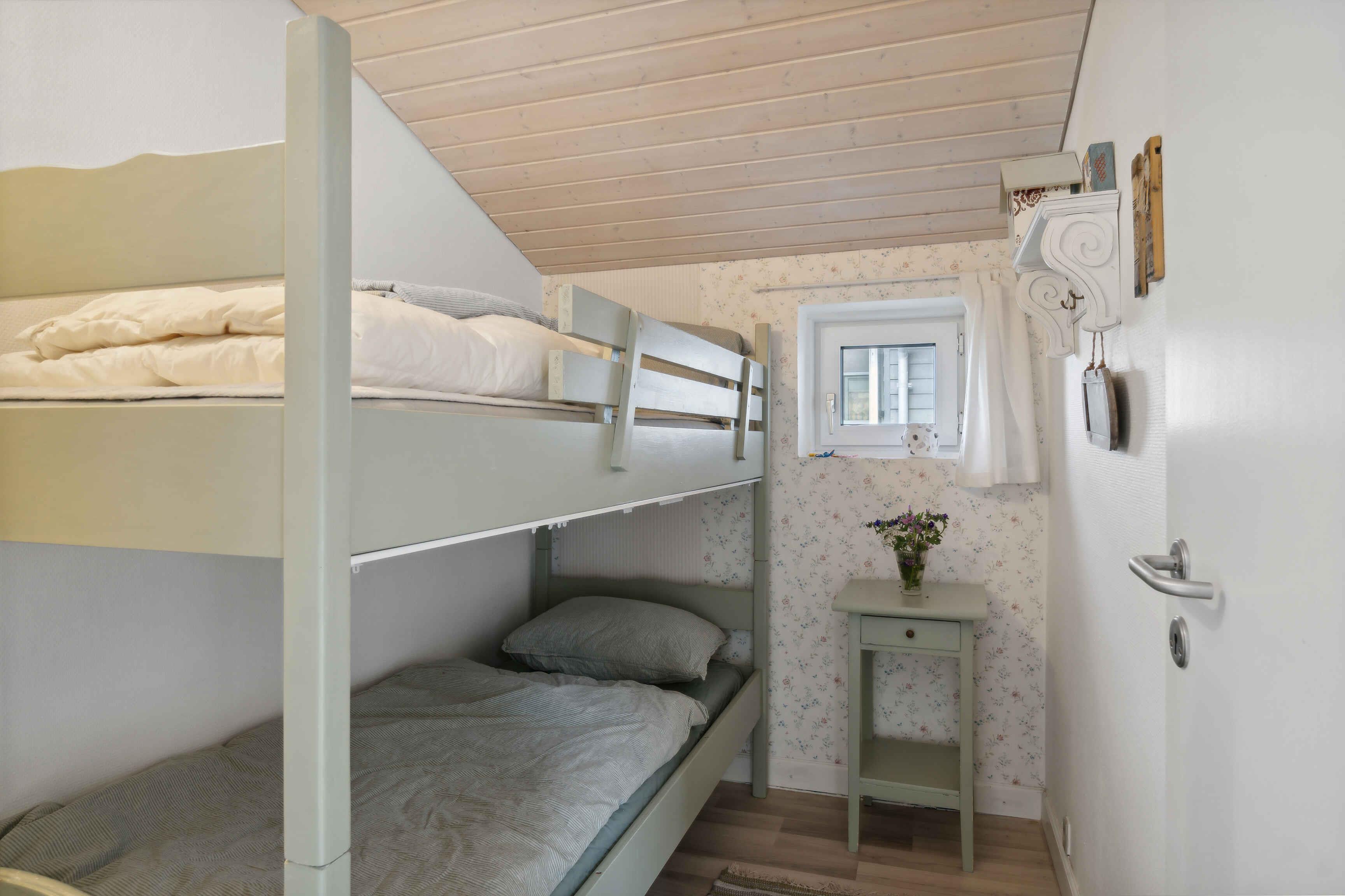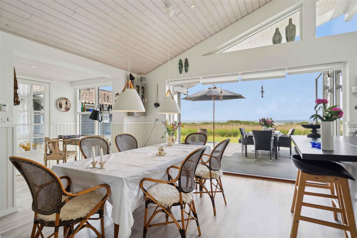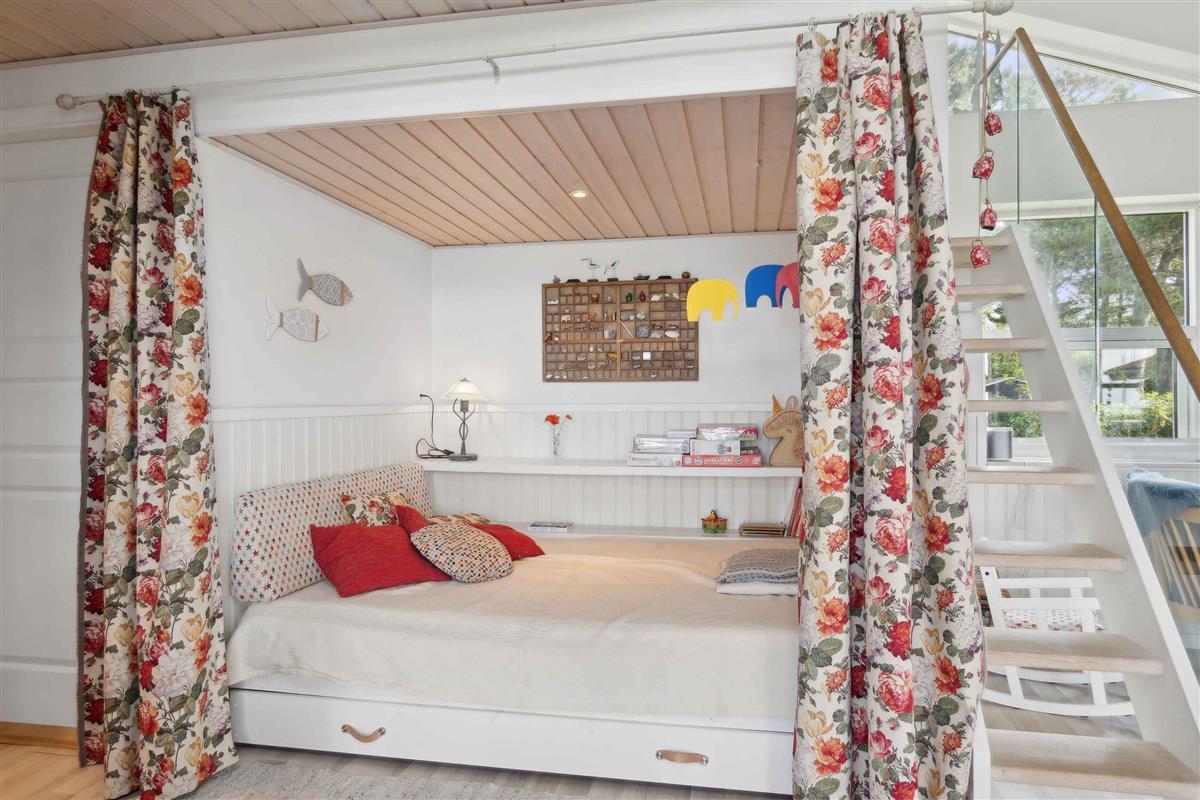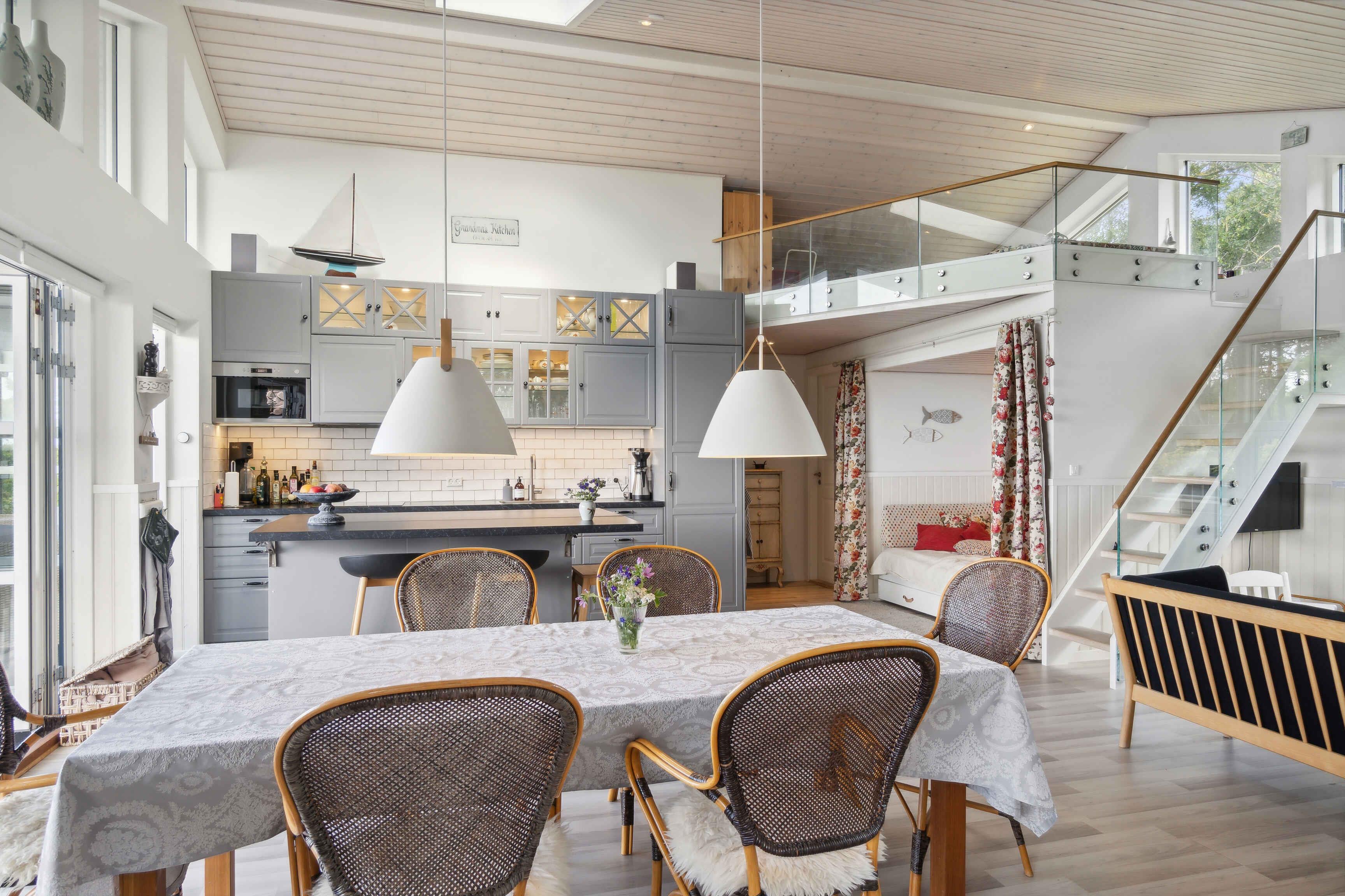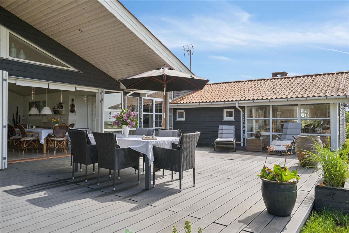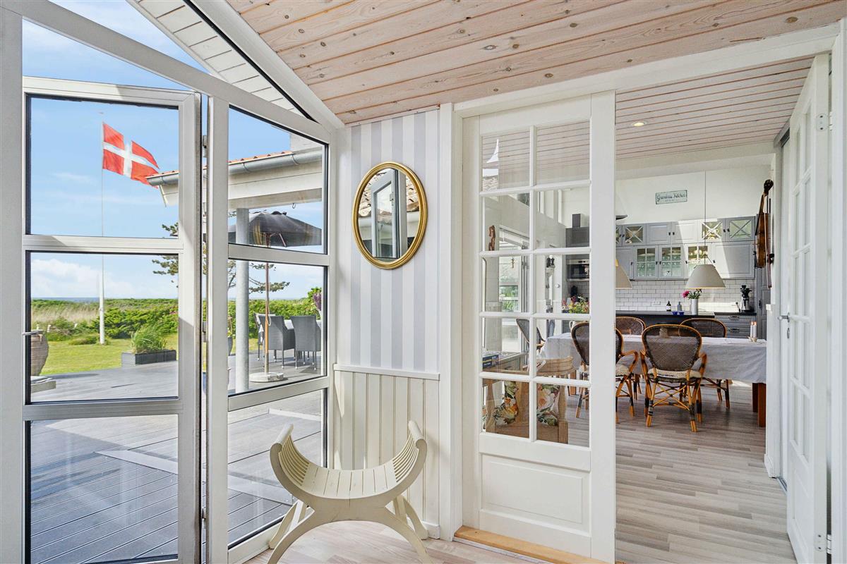 Dit unieke zomerhuis dicht bij Ebeltoft, gelegen in de allereerste rij en op 50 m van de zee, is de perfecte plek voor een ontspannen of actieve vakantie. Het huis is 140 m² en met meerdere slaapkamers is er volop ruimte voor maximaal 8 personen. Dit maakt het huis ideaal voor zowel grote gezinnen, meerdere generaties als groepen vrienden. Het huis presenteert zich in een prachtige blauwe kleur, die mooi samensmelt met de omliggende schilderachtige omgeving. De grote panoramische ramen en de ruime terrassen nodigen gasten uit om te genieten van het prachtige uitzicht op de zee en het omliggende landschap. Vanaf het terras heeft men bovendien uitzicht op speelruimtes, waar schommels, een trampoline, een zandbak en verschillende spellen optimale mogelijkheden bieden voor plezier voor alle generaties. Binnen biedt het zomerhuis een charmante inrichting, waar eigenzinnige vondsten van vlooienmarkten, moderne gemakken en een strandhotelsfeer het verblijf tot iets heel bijzonders maken. Het interieur is licht en uitnodigend met een grote open leefruimte, die een comfortabele woonkamer, eetruimte, een alkoof en een zolder ingericht voor kinderen omvat. De grote leefruimte kan worden geopend naar het 100 m2 grote terras, en de leefruimte bevat een volledig uitgeruste geïntegreerde keuken. Er zijn twee moderne badkamers. Het huis is ingericht in twee afdelingen, die de mogelijkheid bieden om zich in alle rust terug te trekken. De eigenaren van het huis hebben voldoende ruimte gecreëerd voor gasten en vertrouwen erop dat men goed zorgt voor de vele persoonlijke spullen in het huis. Dit zomerhuis is de perfecte toevluchtsoord voor degenen die willen genieten van de schilderachtige omgeving van Ebeltoft, die een bezoek aan de historische stad Ebeltoft met musea, een voetgangersgebied en de haven met zijn eigen charme biedt, waar vroege vogels de kans hebben om verse vis direct van de kotter Margrethe te kopen. Nationaal park Mols Bjerge biedt unieke natuur, en vanaf het zomerhuis kan men lange wandelingen langs het water maken. Men kan zich ook laten uitdagen op het nabijgelegen mountainbikepad of profiteren van de vele watersportmogelijkheden. Men kan ook gewoon genieten van het leven en de Deense zomer op het terras met een koele witte wijn en een vuurkorf. Tot slot kan men een duik nemen. Let op: Niet te huur voor commercieel gebruik.